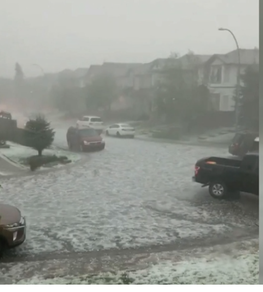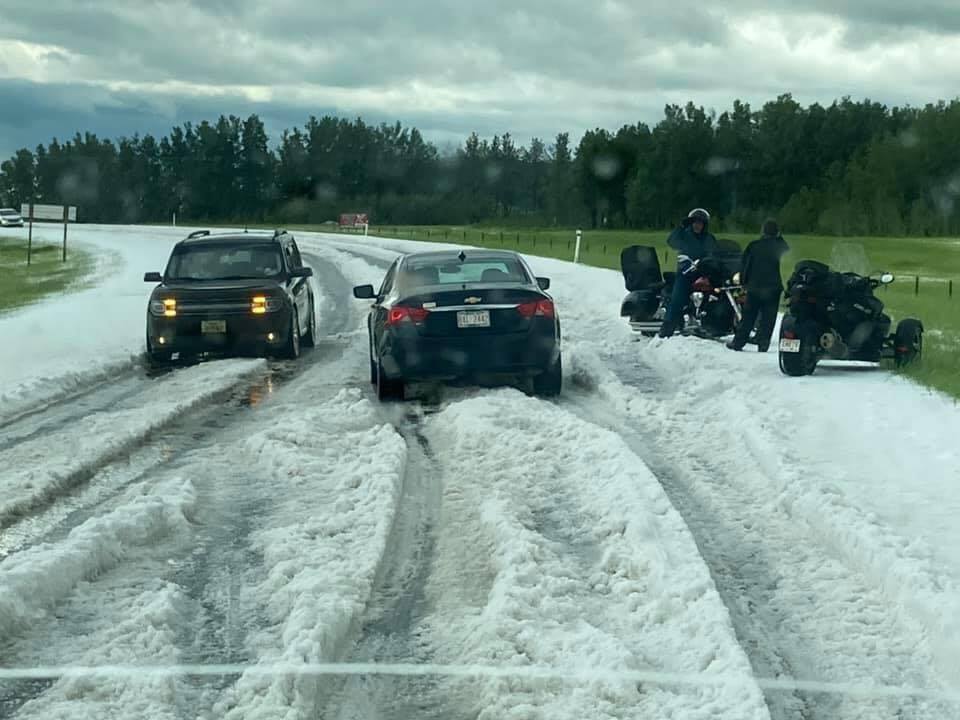 It was black out again and we knew another storm was brewing. Jackie & I headed into town around 5pm and the clouds just kept getting blacker. Luckily for us just rain. This is about 20 miles outside of Calgary this time where the hail hit.