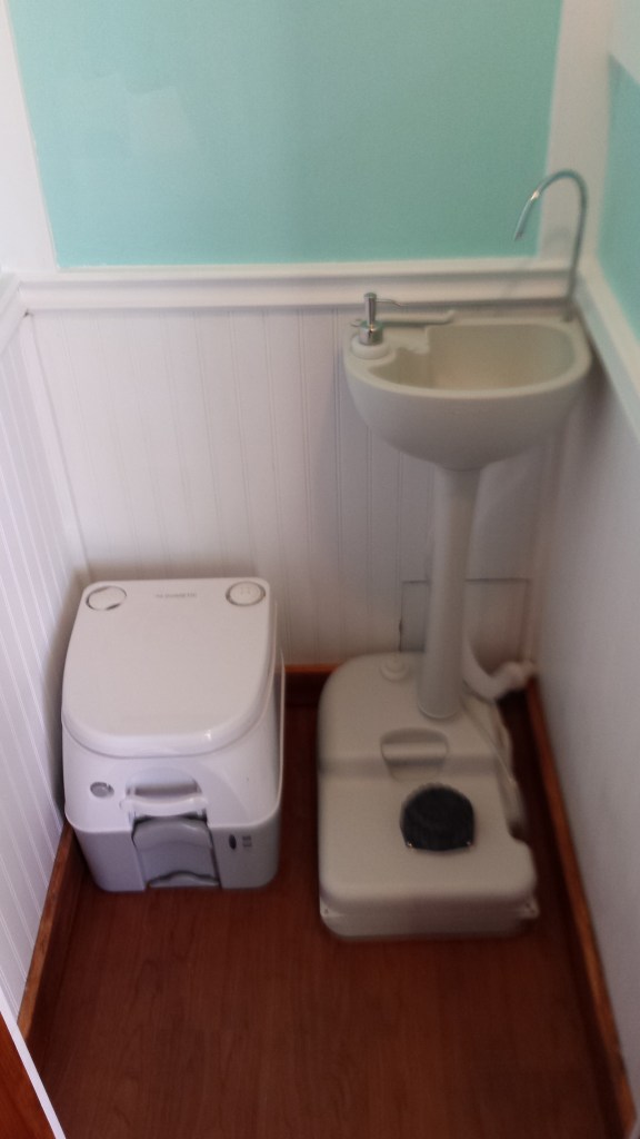 I headed out to the lot with my bathroom sink. I put it together and only need to drill a hole and get a small piece of PVC pipe for the drain. Both the potty and sink fit in nicely and will be great for any guest that is staying overnight. The washroom looks good and will be nicely functioning. Only odd thing is they didn’t give a basin plug with it. I don’t care for that so will need to see if Canadian Tire has one that will fit.