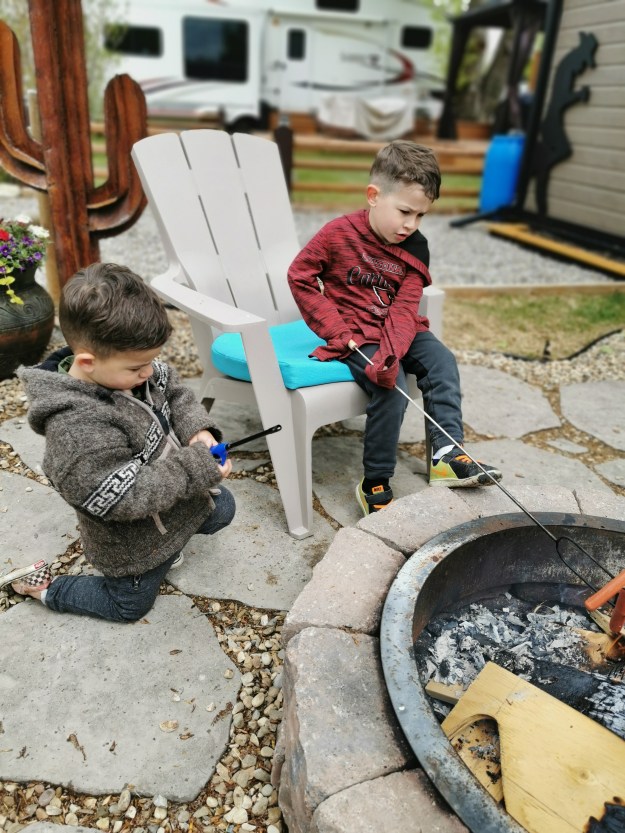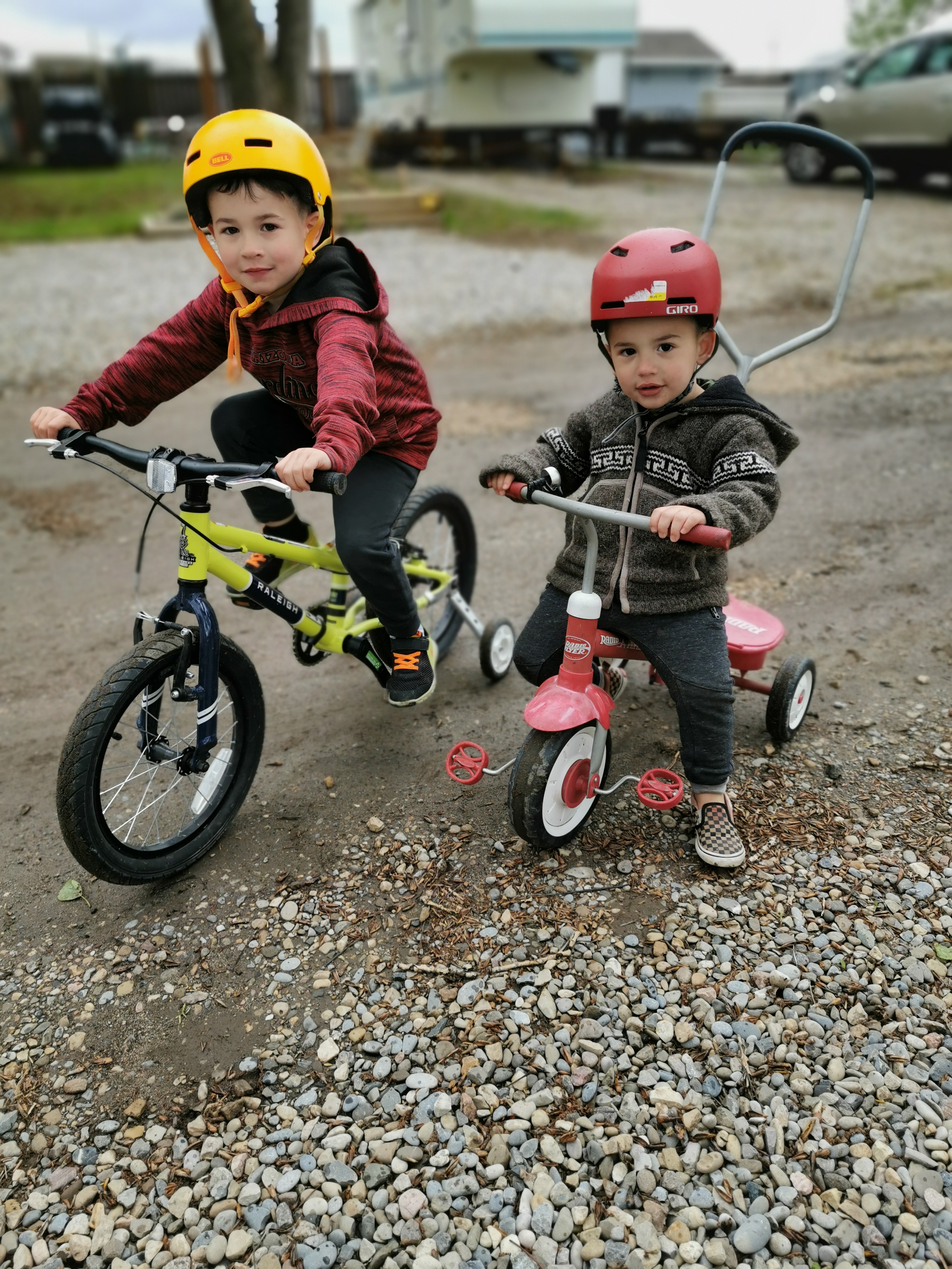 The boys all brought their bikes out which was excellent for them as they circled the campground numerous times. Jackson was great with the two younger guys waiting and helping them bike also. Atti needed a bit of adult help to keep up. They had a fun day !