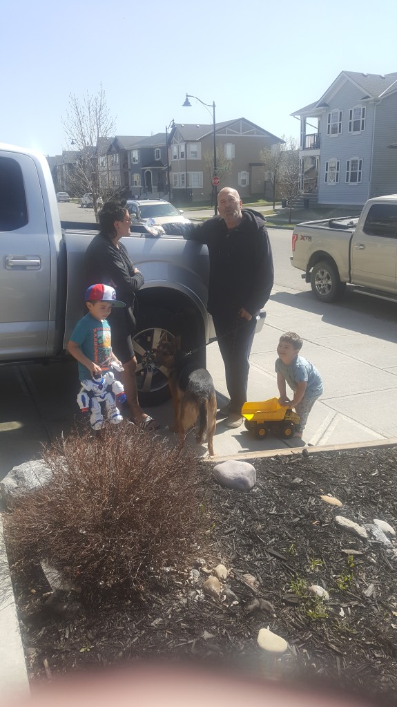 Today Jackie and I spent the afternoon at Victoria’s place with Jackson. This social distancing sucks but it was fun watching and conversing with them and it was especially nice sitting in the sun. Hazel was exceptional with Daisy as she sniffed her thru her kennel fabric. Jackson told us plenty of jokes and stories which is fun. We had Tim’s in the backyard. How Canadian is that ?