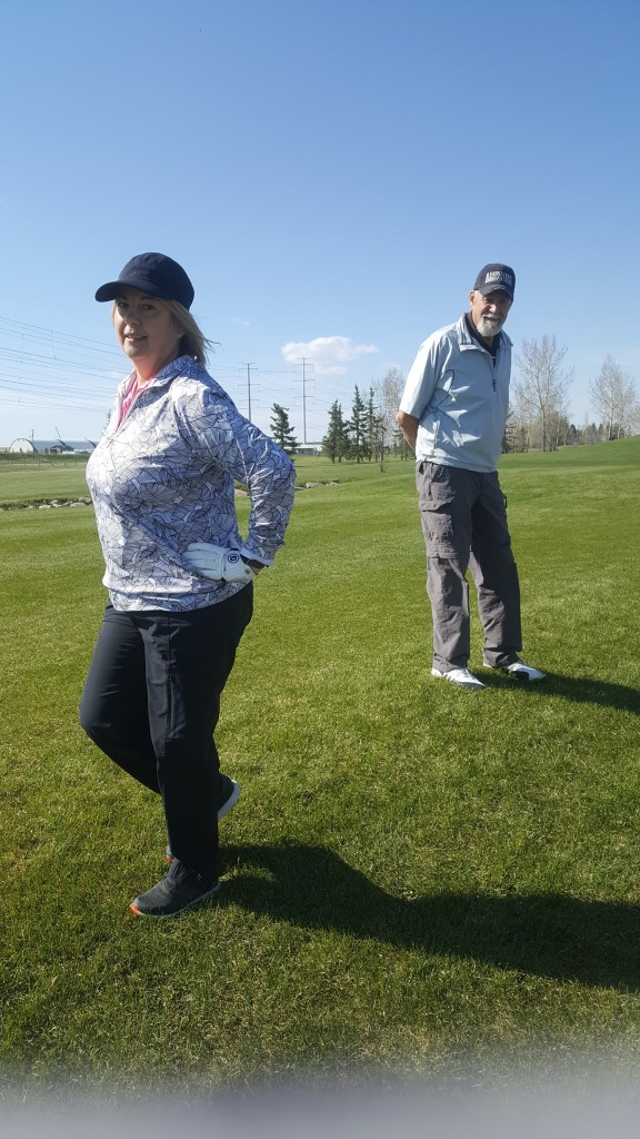 The first day to wear shorts golfing. That is amazing that it is almost June and we have had no hot weather. It was a beautiful day and no wind so the perfect day to golf. I was meeting Jeff & Wendy today at Heatherglen. We were tagged up with a gentleman that owns a company that does piping for the oil industry. He was quite funny. In his Polish accent. ” No work, so I golf” That is one thing I am wanting to change. So many people not working the courses are busier than normal. Get back to work and let us retired guys golf without it being too busy. LOL