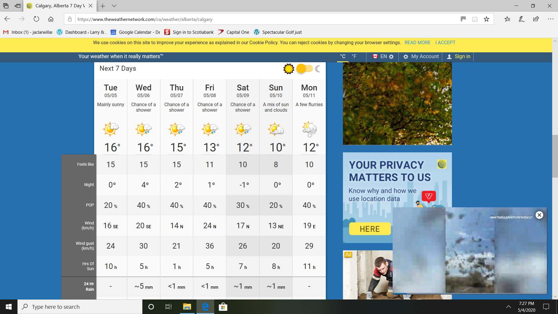 How bad is it that I had to put on a winter jacket and toque on to go for a walk with Daisy LarE . 7 degrees and feels like 4 degrees in May and further more I see minus temperatures coming up.