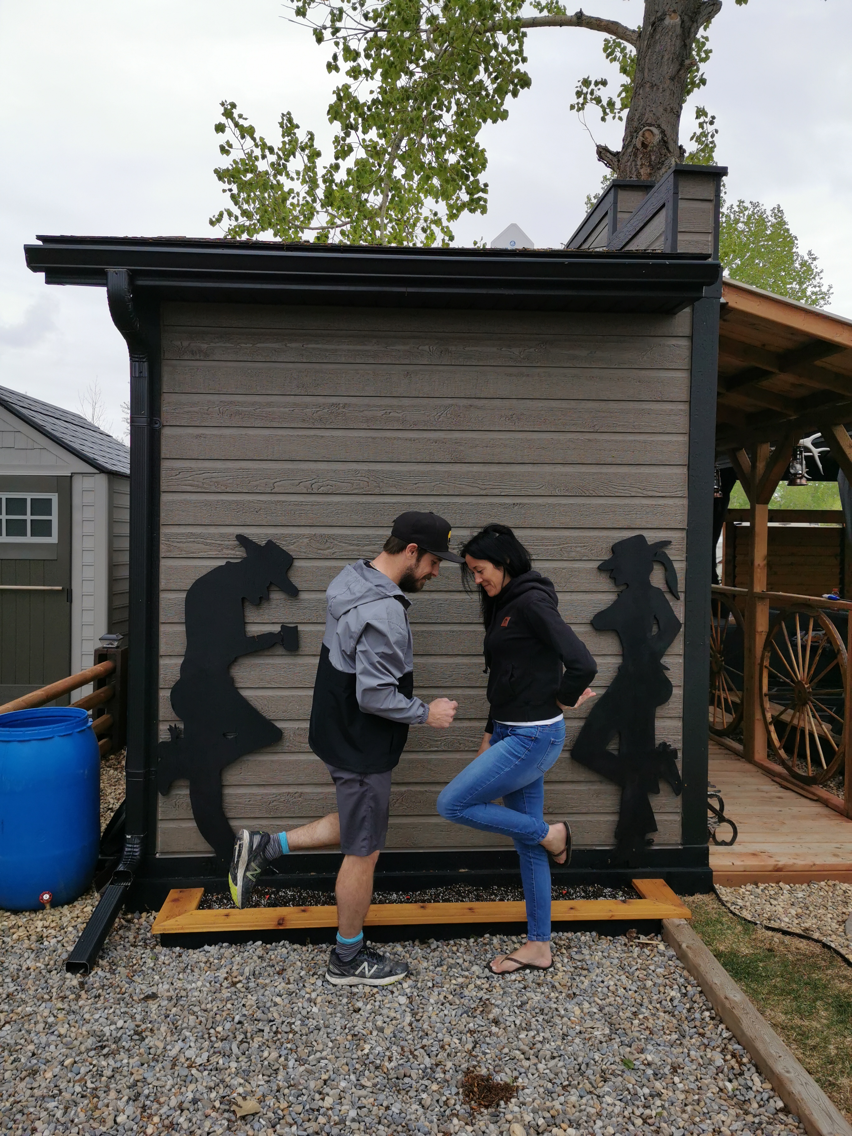 The funniest thing happened today. Victoria and Corey were standing in front of the shed and sun shadows reflected on the side their profiles perfectly.