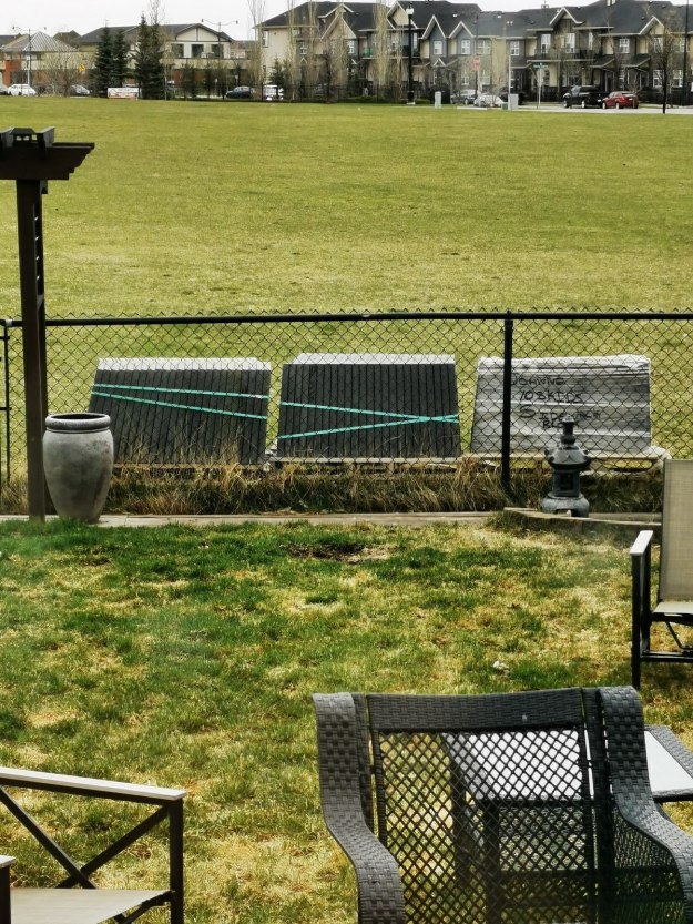 Jackie & I spent most of the day out at the lot. While it was relatively warm it felt cooler as the strong winds were prevalent. This was Daisy LarE’s first adventure out there and she loved it. We set up her barrier on the deck so she could see us while we worked. We accomplished a fair amount today. I stained the above ground flower box and the flower box in front of the shed. The brush I used last year only took a few swipes and it softened right up. I really like the final looks. Now just have to wait until the weather allows bedding plants but typically it is May Long Weekend. Jackie finished up removing all of the remaining gravel so I am ready for picking up soil, installing my sprinkler system and the sod. Next weeks project plus throwing in a couple of golf games.