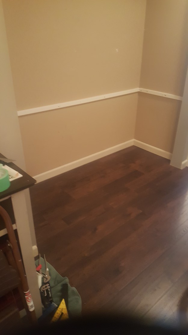 Today was great. ONE room done completely. Paint, base, flooring and reloaded with furniture.