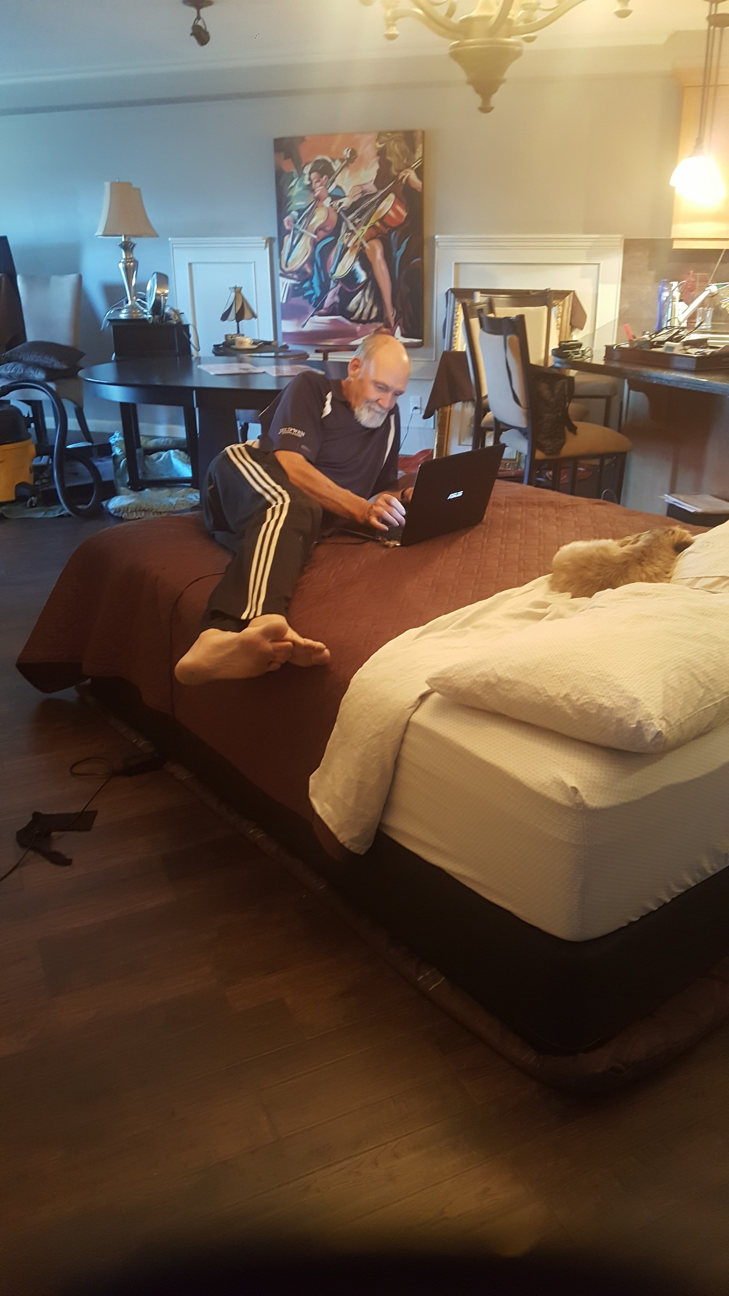 Corey has a bit of assembly tonight and then they will be sleeping in a bed where they may think they are in different rooms it is so big. They have a huge primary bedroom ( master bedroom) so the bed fits easily and will work out for them very nicely.