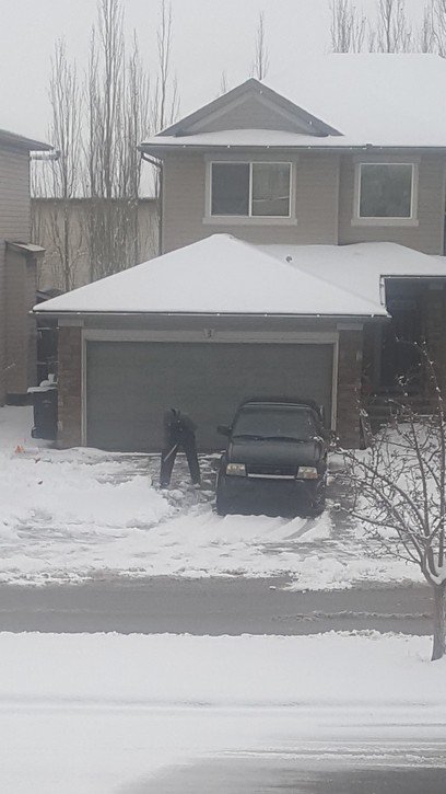 Woke up this morning and it was a great feeling knowing the floor was done. Great feeling. Looking outside this morning just made me smile as I witnessed a gentleman shoveling snow like mad. That is one thing I do not miss. He had a power broom and shovel to do his work. I ran to get my camera but he quit before I could get ready. Grass and snow is a GREAT reason not to live in a single family home. No regrets whatso ever on making that decision. A villa with a HOA would have been nice but not now. Got this guy just a few minutes later.