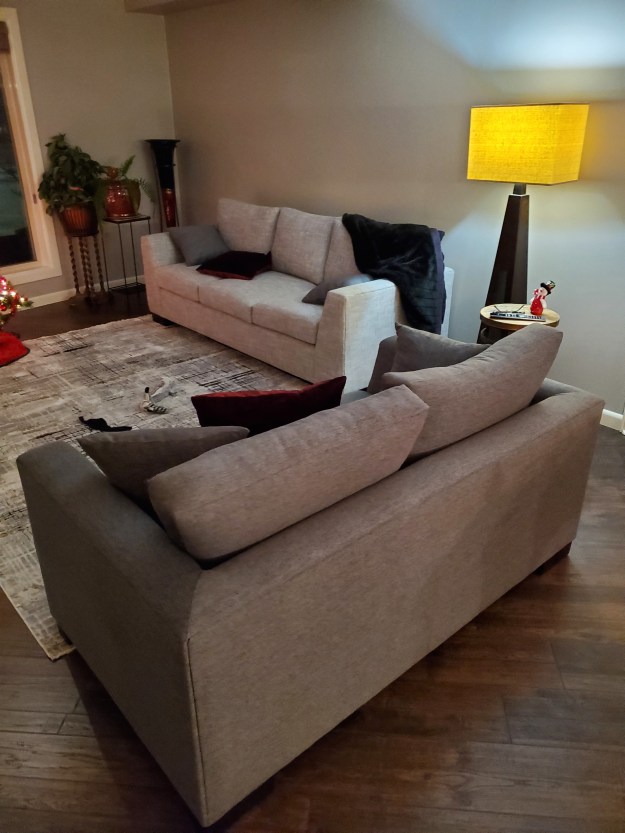 We are still waiting for our end tables and coffee table to show up. Hopefully before Christmas. The new couches and rug look great but we can’t hang pictures yet as the final placement is based on the end table sizing. Really like the looks though and we are back in the 2020’s. Not quite as comfortable as the the other set but again really well made.