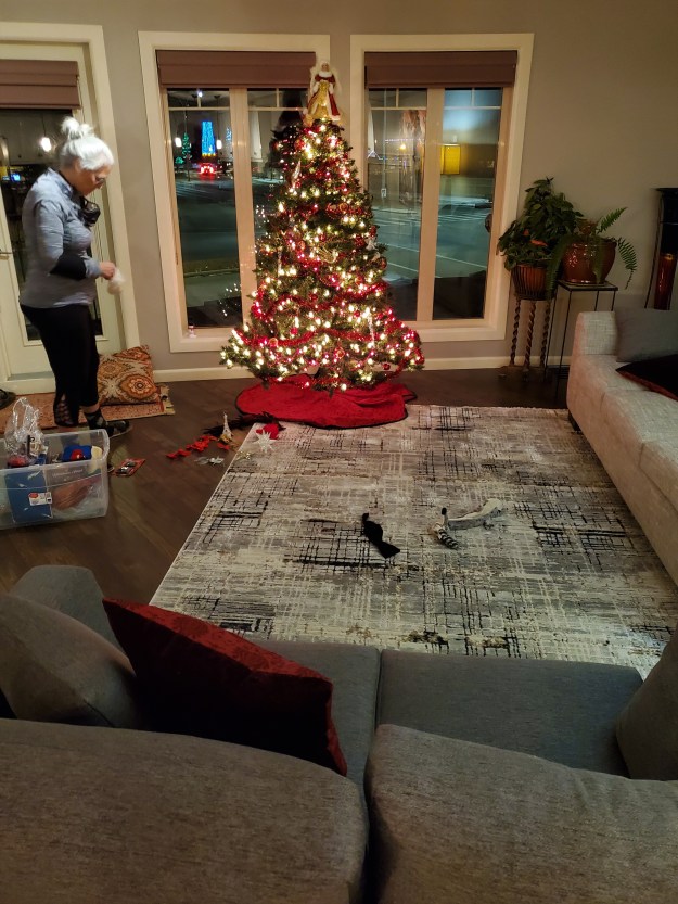 I made a plan to take down all of Christmas decorations on Jan 1st just in time as our end table and coffee table are supposed to arrive on the 4th now. I say supposed to. LOL