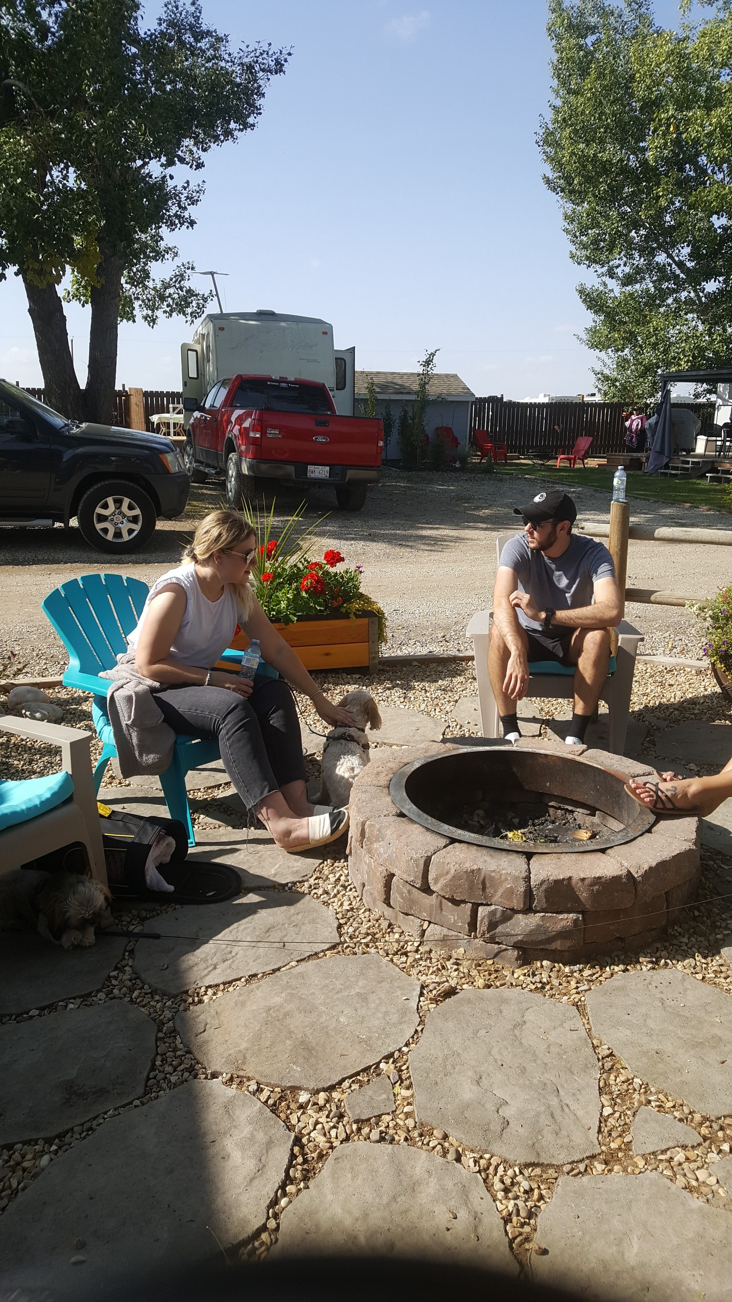 Talked to the neighbors for quite a bit , and relaxed in the sun a bit . Used a half bottle of ant killer on a few hills and sprayed any weeds that were popping up in the gravel.