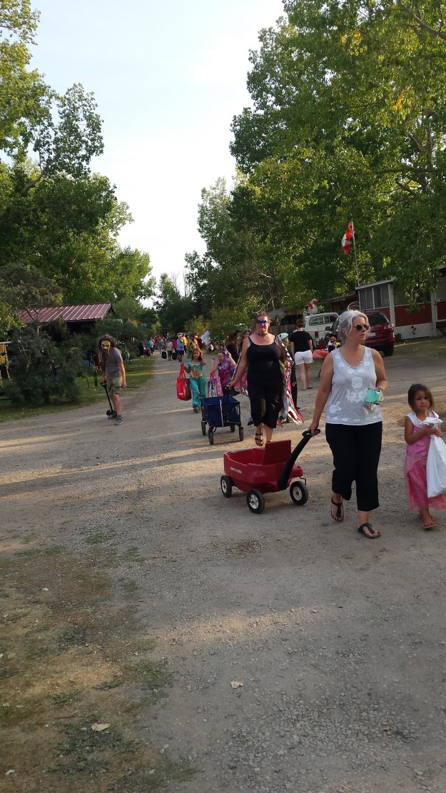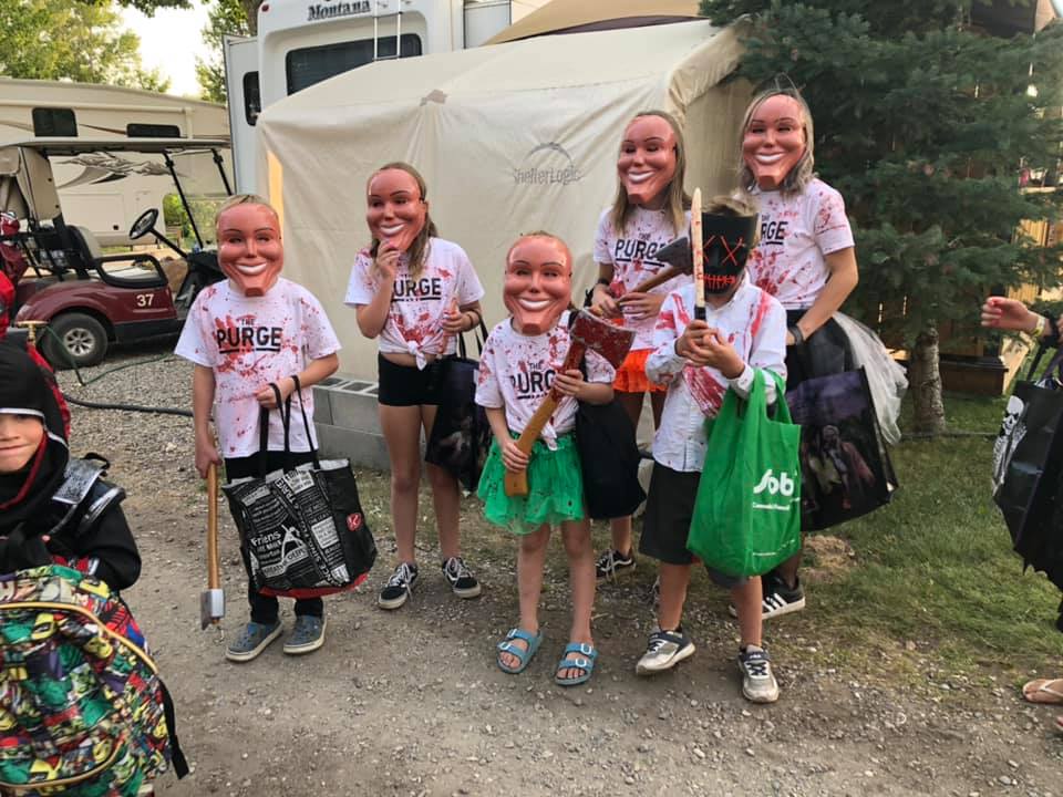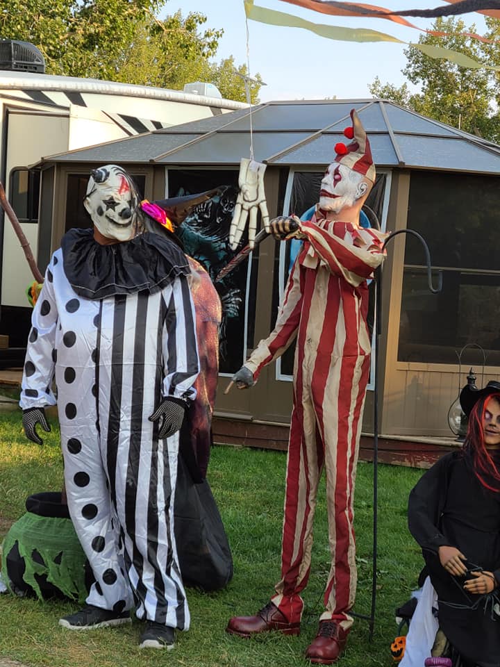 September Long Weekends are very similar to May Long Weekends. More often that not we have had bad weather. We have camped the Long weekends for decades and some nasty weather. Snow, rain, cold, winds and the odd hot one thrown in. We used to camp at random spots. For years we camped at Pembina Prov Park which was always fun especially if good weather with a large group. For the last three years we now stay in our Resort as Sept Long is a special event. The EARLY Halloween is spectacular with the RV lots all dressed up, 200 kids needing candy and the shooters for the adults. The resort also puts on a Carnival with large bouncy houses, mazes, dunk pools etc but this year due to Covid was it was called off. But we had a fantastic Halloween, more than normal Shooter locations , a Show & Shine and a Drive In movie experience. The screen had to be 20 x 50 and the clarity was first class. The speakers were used from the dances and provided wonderful sound. It was a fun fun evening for everyone.