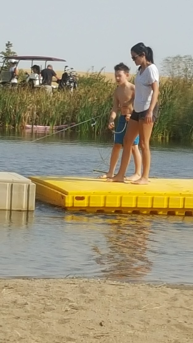 Tor and Jackson on the float. Right behind them is Hole #2 and I watched two young guys butt in front of this foursome on the hole.