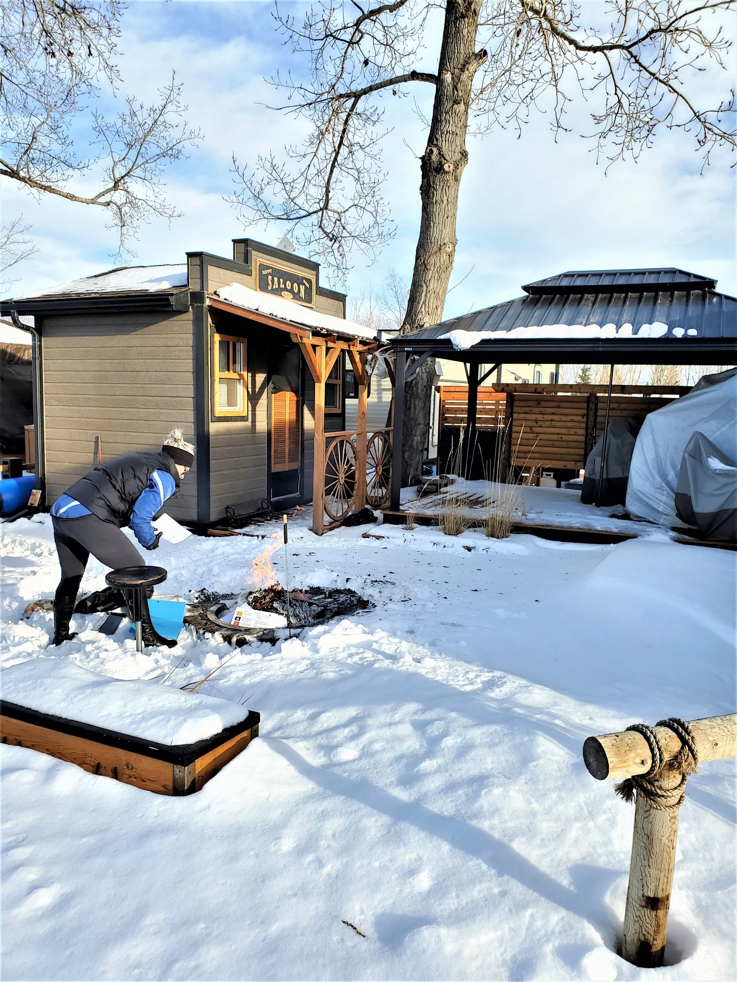 The ice rink was busy today. A great thing to have for the kids. We drove her from our site to the rink and noticed MULTIPLE sites that I am sure are breaking the rules. People !! Lots of golf carts pulling kids on toboggans up down the roads. Being out there only made me wish summer would hurry up and come.