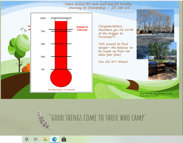 So what does this mean. It means that instead of leasing our lot for 35 years from an investor that could sell it or even potentially become insolvent and having nothing at the end of it we now own it. When leased if we were to sell it, it is devalued by the years from the contract. ie if we sold now it would be worth 35k- 4yrs @ 1000= $31, 000 for the land only. Now that we “own” the land the value will increase as land values and demand dictates. Now we have to add this asset to our will. Our value today would be around $ 60,000 for our lot. It is a great day to own rather than lease.