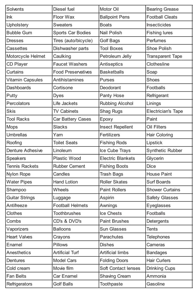 Thought I would just throw this in to hopefully get people to think. We all want a better place to live, cleaner, healthier etc but what the NDP, Liberals, Green, Dems want is to destroy our economy. We can all get better, a way better but slowly and done correctly. This is a list of everyday things that these people ( Don Cherry got fired for saying those people) forget is made with oil. No Oil our society as we know doesn’t exist. So to that I say please think and research things a bit before jumping to conclusions. Oil and green can co-exist.