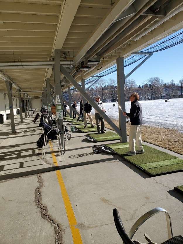 It felt semi normal today getting to go to the driving range. The newer reno’s are wonderful. Everything new. Masks to pay and get your balls and after that with the spacing mask free. It was wonderful. The space heaters worked perfect. The only issue was the low sun not allowing us to watch our ball flight. I met Jeff there and we had a lot of blast. I like the range first to feel the crisp hits but to work out things. Closing the face for a draw, opening for a fade and learning what happens with each different setup. Moving the ball back in your stance by even an inch makes a huge difference. I usually hit to the left of my target until I discovered by setting the ball back 1 inch it went right where I aimed. I was VERY happy with the way I hit the ball today. The heaters made it plenty warm enough. The cost is getting a little high but it still is worth it to keep the swing memory in place. I did notice after I paid they had a senior rate that I forgot to ask for. I gave them a tip also to help them make a little money but next time I will get the senior rate but still give the tip. The large basket is 120 balls, medium at 80 balls which is a little bigger than a lot of driving ranges.