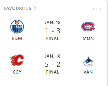 Another wonderful night of switching back and forth between Oilers and Flames. The Flames game was a well played game as a goalie battle. The Oilers played very well also but just about lost the game. Mc David with 4 on 4 is dangerous.