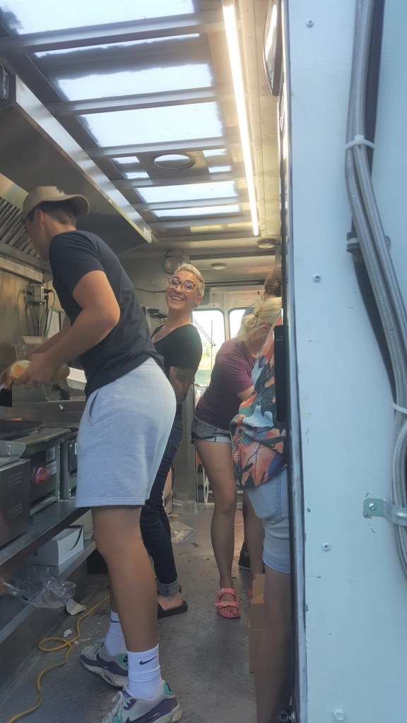 I was very impressed with their whole operation. The Square POS system worked fantastic with Jessica doing some creative programming. The truck is exceptionally clean and organized inside. In fact there were 5 adults and one child in it working away. They may want to add a/c or least a portable unit as it would be a warm workplace.