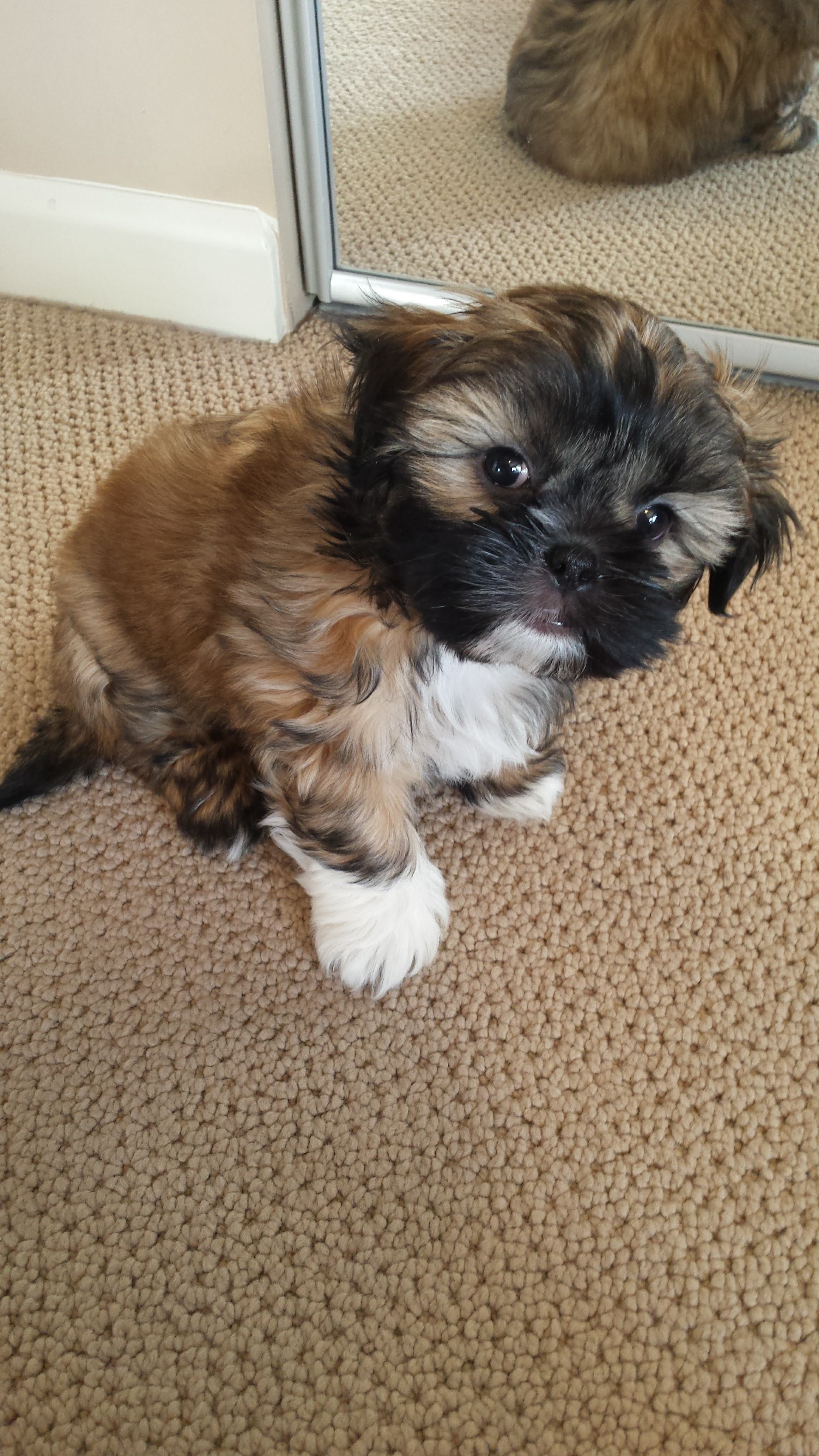 International Puppy Day world wide. I nominate for the cutest puppy our little girl named Daisy LaRe Willard. Along with her wonderful looks she has a great personality. Absolutely loves people and other dogs. Fully trained ( not many tricks) and her only fault is her barking at other dogs. Her obsession with my socks is annoying but funny.