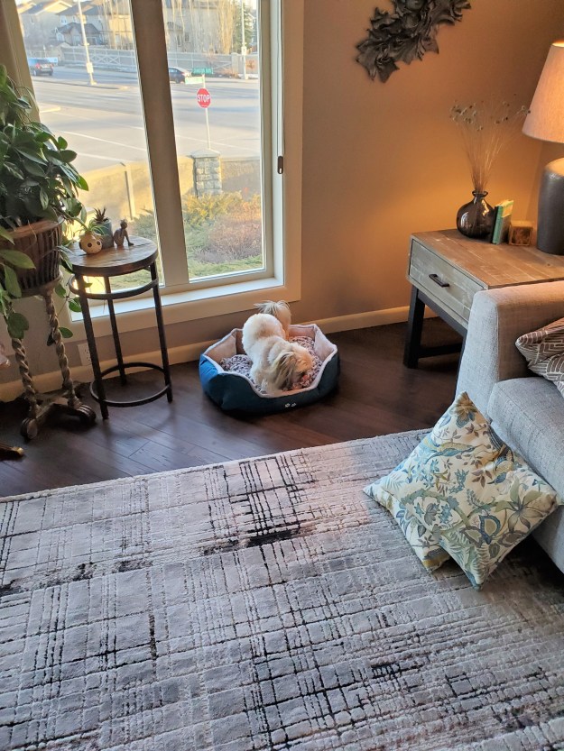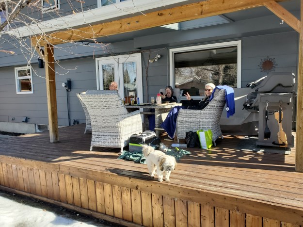 Before lunch we met Victoria, Corey and Jackson at the dog park for a quick Tim’s and watching the dogs in the park. Beautifully warm but very windy so ear covers needed. I love watching Daisy run. A little speed demon from dog to dog. The large dogs love to run and are fast and with their long legs can easily pass her. Once we thought this dog chasing Daisy would run her over and make her go head over tail but she wiggled enough to stay out of the way. She has fast side to side movement that helps. Having Hazel there actually helped teach Daisy to stay nearer to us while we walked and she played. I know she loves the park but I also do. Ps the new Crave sandwiches from Tim’s are not very good.
