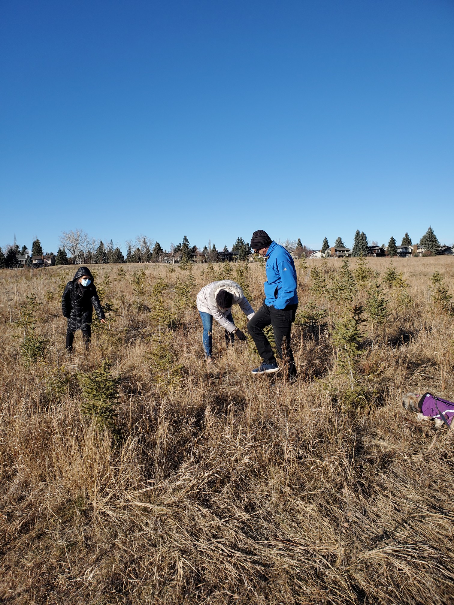 We met Alan & MaryAnn at Fish Creek Prov and walked out to Peter’s Memorial tree. I took a bit of looking as the grass had grown and a new path had been added. Jackie found the small Teddy Bear ornament that had been put on his tree so we could identify it. Daisy and Tia had a fun walk around. Heated washrooms at the park are a treat.