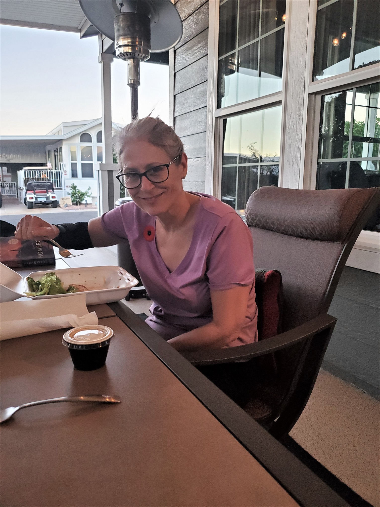 The first time this season for something we love. That is sitting outside enjoying the warmth while having supper. As we haven’t fully loaded up yet with groceries we decided to order takeout from Fat Willy’s. I drove and picked up our order. No masks anywhere again. I just don’t get it. Two people both fully vaccinated can still cause chaos as one of them could be a carrier and give the other with the weaker immune system Covid. Oh well I will carry on with mine. I get home and they gave us the wrong order. Jackie didn’t care for her substitute so I headed back and they made us a new order. As the saying goes ” Things happen” They were very good at the speed to make it right.