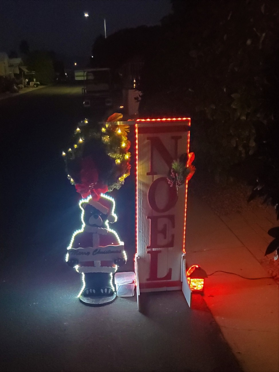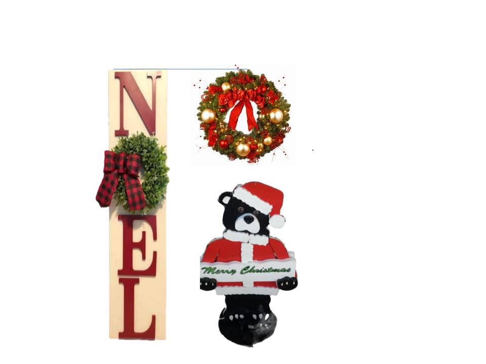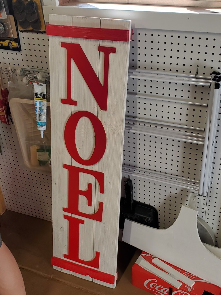 My Santa Bear, Noel board and rebar painted to hang a lighted reef.