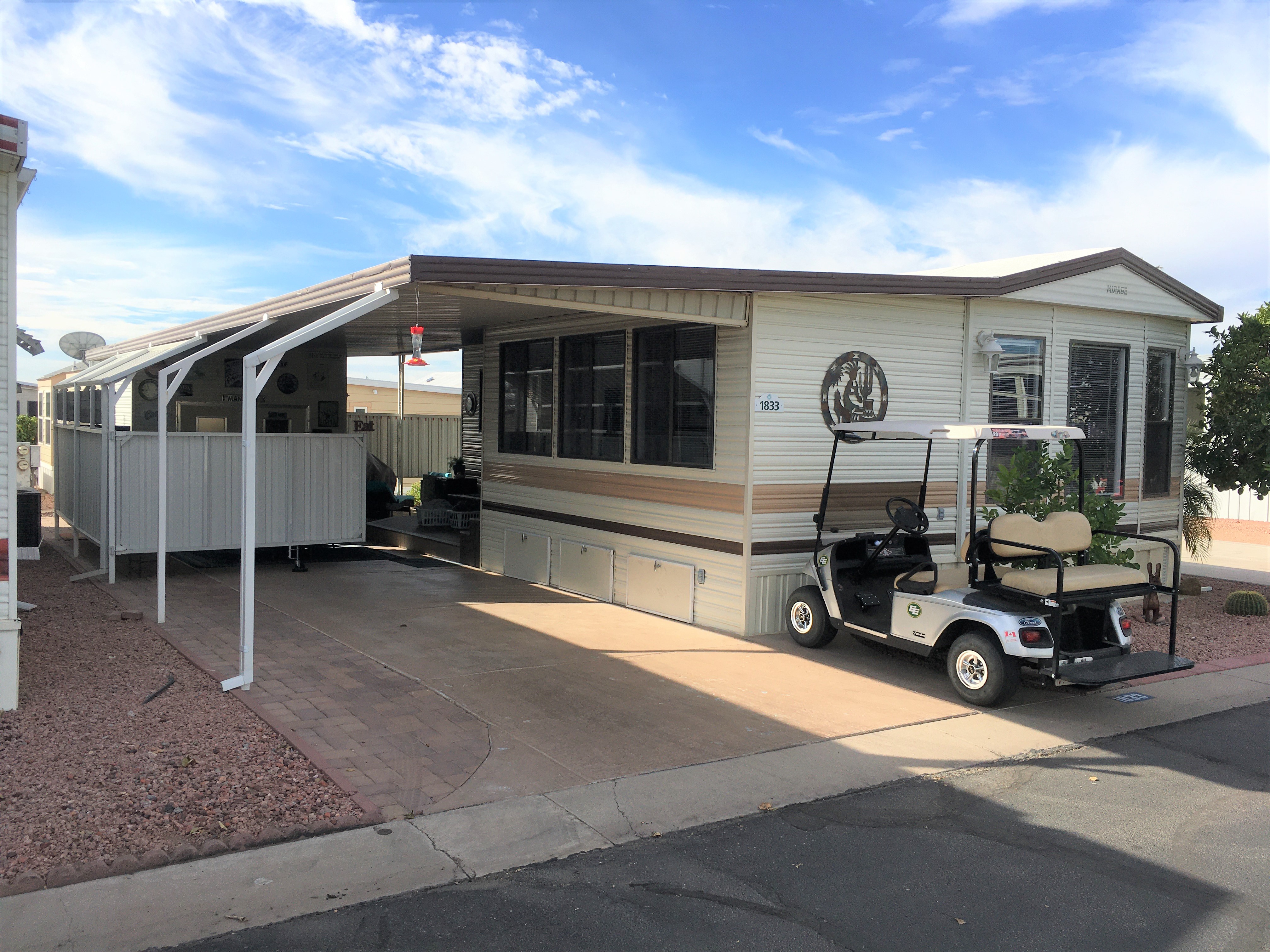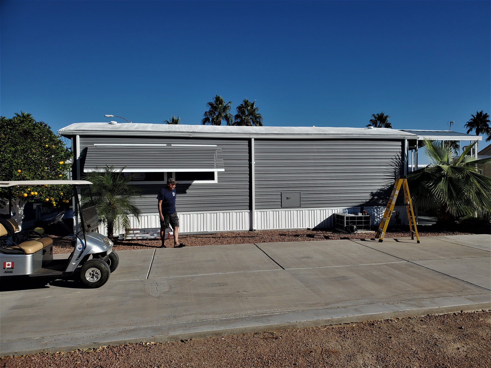 We got it all done and if I have to say myself, done very well and looks wonderful. Fred & Terry this year did a bit of reno. They had their entire unit painted. We installed white trim boards. We did the perimeter with new white soffit skirting panels. And they had their driveway and patio area covered with flakes and epoxy. A lot of stuff with it changing the looks of their unit drastically. Modernized and made it look great.
