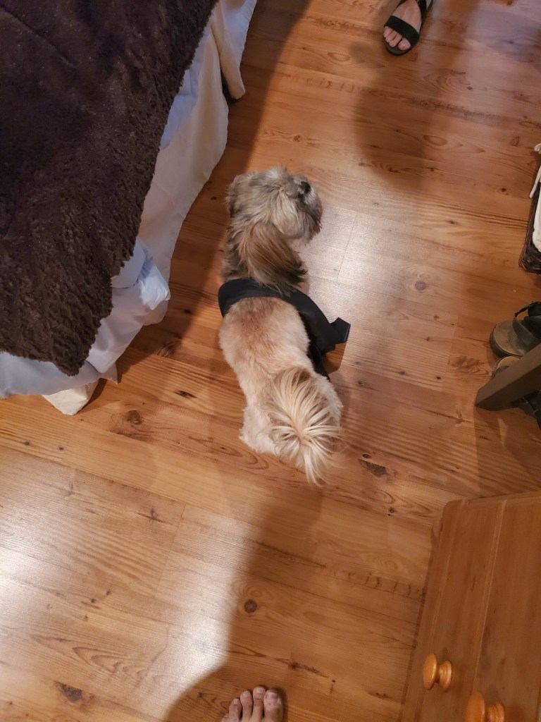 That Daisy is one of a kind. This morning while in the shower she grabs my underwear and runs away with them. Funny thing is she got tangled up in them and struggled to get out. And Jackie wonders why my underwear get rips in them.