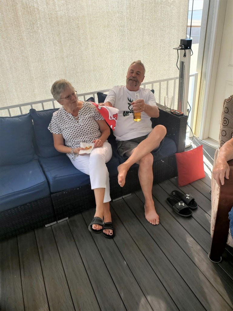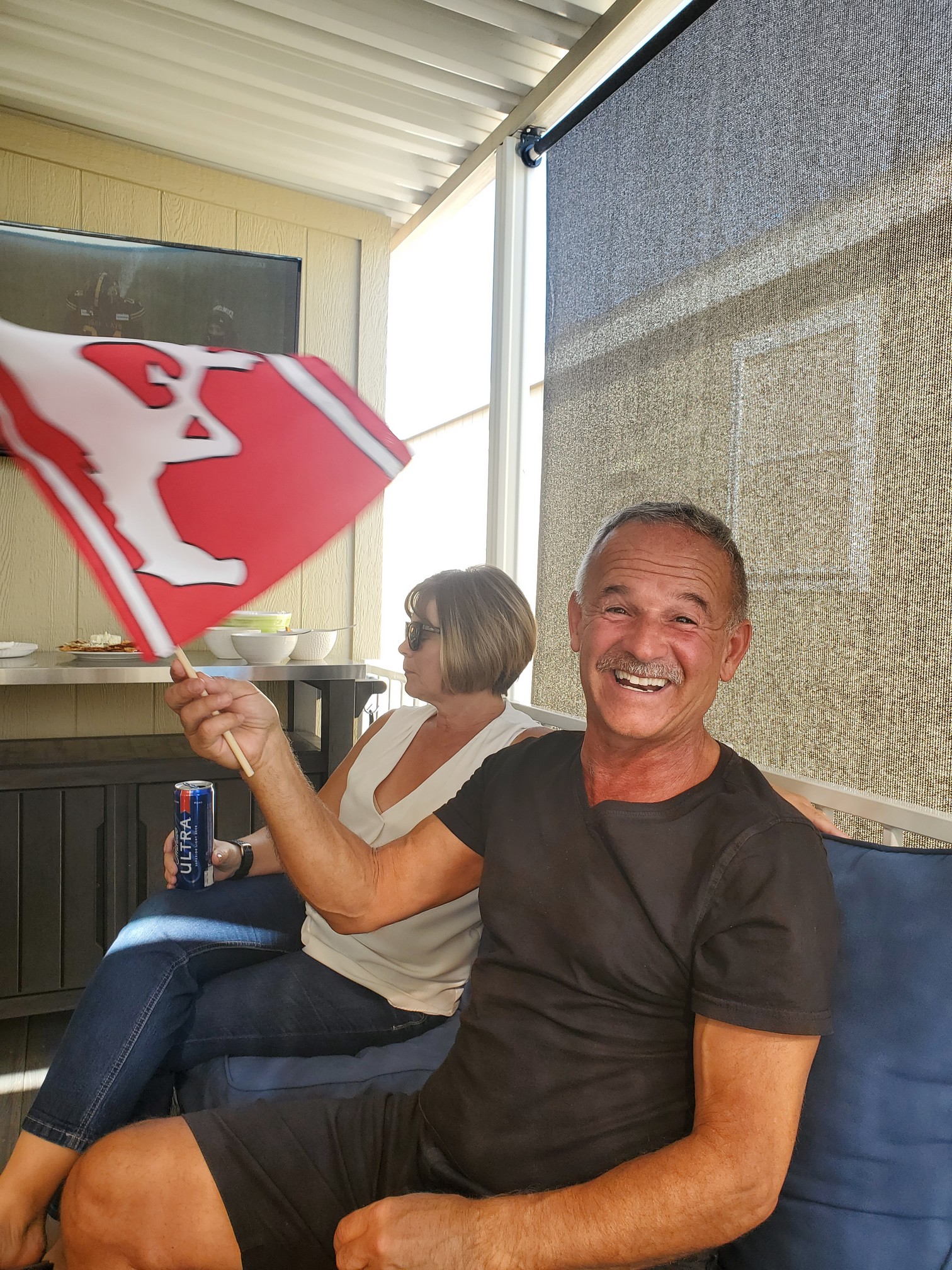 It is nice watching the games sitting outside. Ralph’s place is set up perfectly with the deck space, fridge and TV right there.