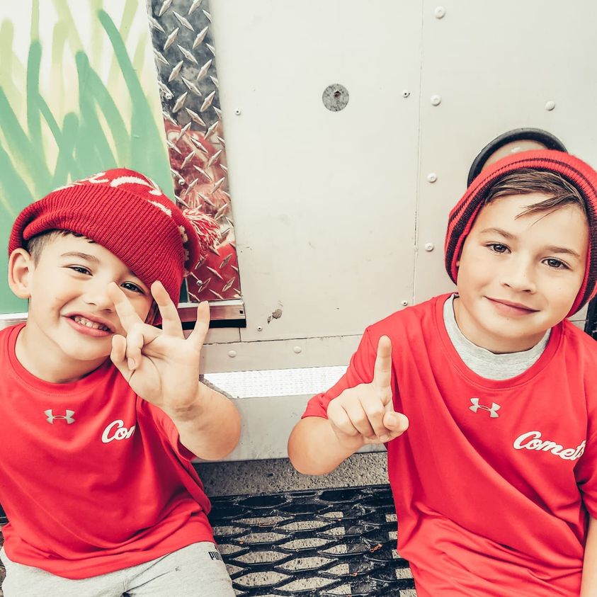 Not the Stamps but here are Atticus and August cheering on their home town football team the Raymond Comets that won the provincial title. The girls ran their food truck during the games this fall. Now those are two good looking fans. Correct color also.