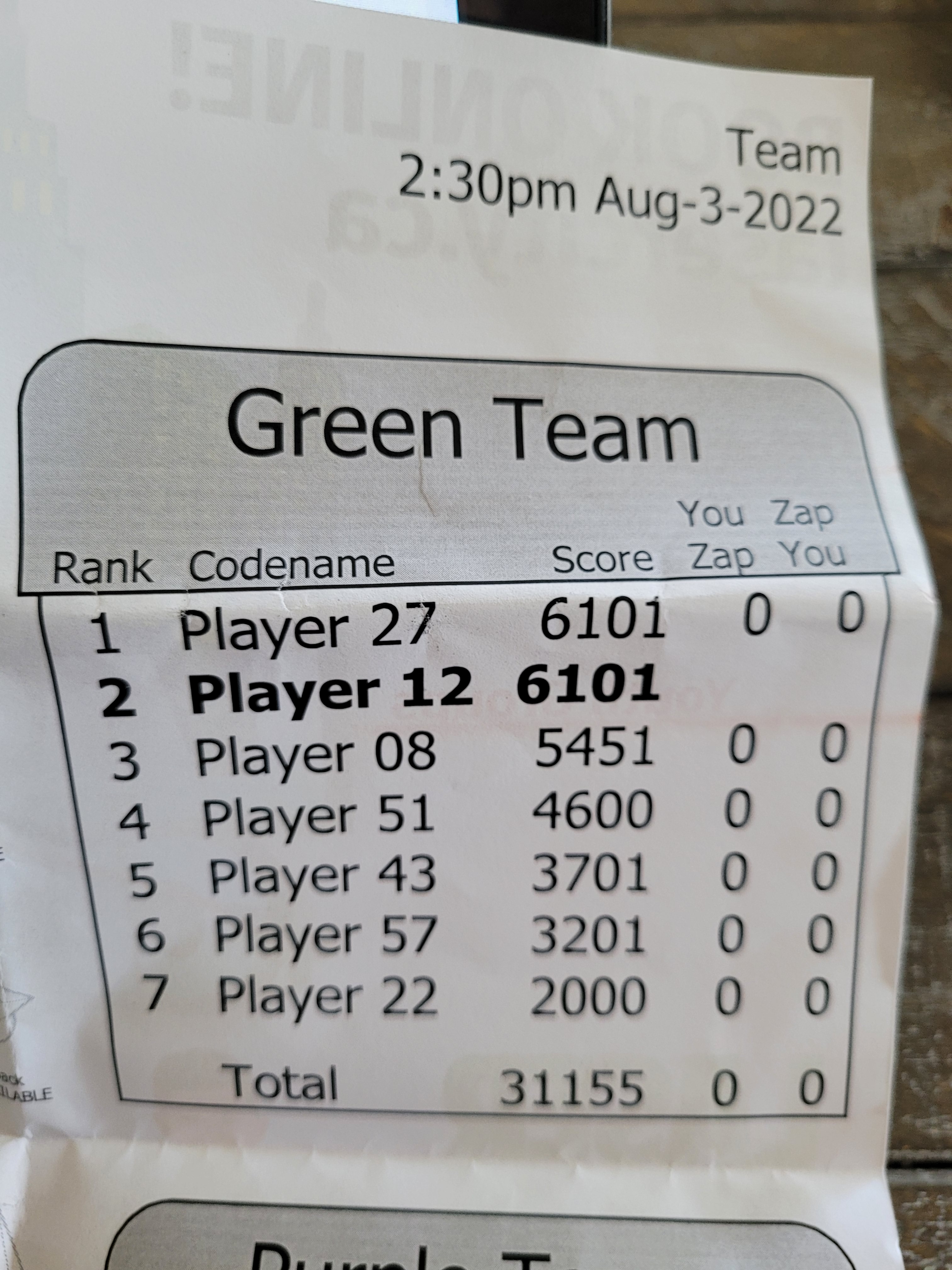 On our way home Jackson wanted to see if we were interested in playing Laser Tag . Jackie wasn’t but I am all in. I remember when my middle name used to be Laser. We had about a 20 min wait and then our turn with 10 others. Two teams but individual scoring. It was a first class facility and turned out to be a blast. I did very well even though ripped off as they listed me as 2nd but I was tied for first place being player #12. It was such a large facility it took at least 10 minutes to run into someone and that long before I even saw Tor, Cor or Jack. It was less dusty than some I have been in which was nice. Larry Laser Willard is pretty good sounding.