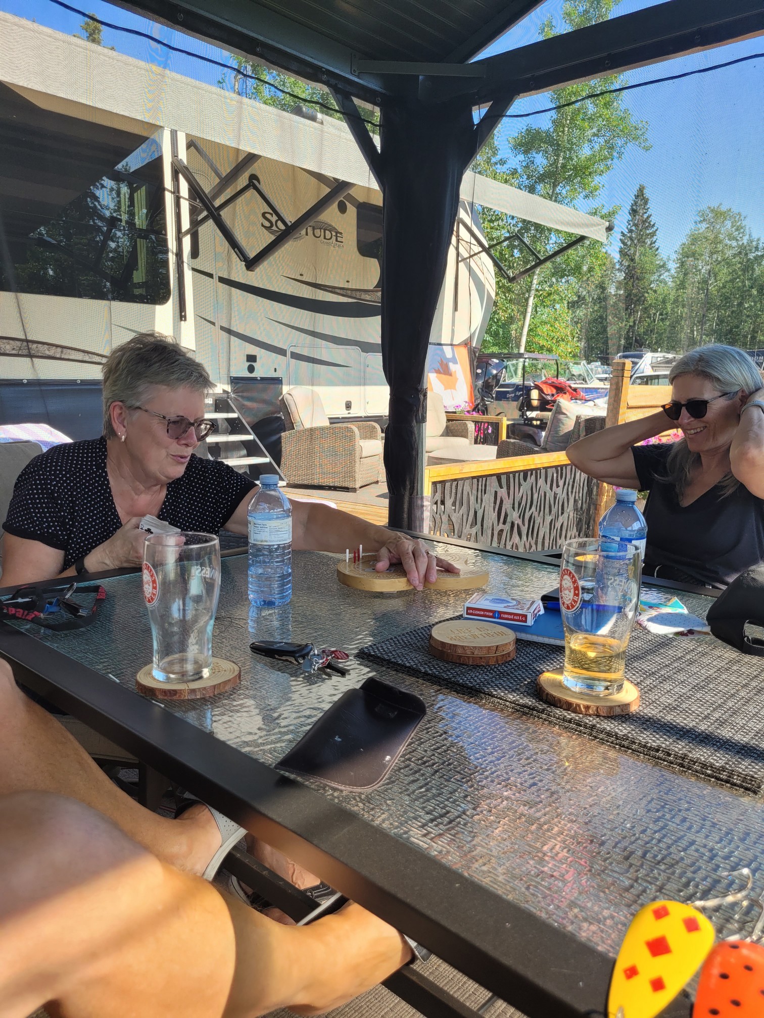 In darts it was Jackie & I against Fred & Terry. Interesting scenario as Jackie is English so is born to be a good dart player, it is Fred’s board and darts and he plays quite often so the results could be lop sided or even depending on a little luck. I will say the Willards came thru big and were the winners each game. English wins I guess. Fred has the perfect dart board system he built. It looks awesome, very sturdy and is portable to put away.