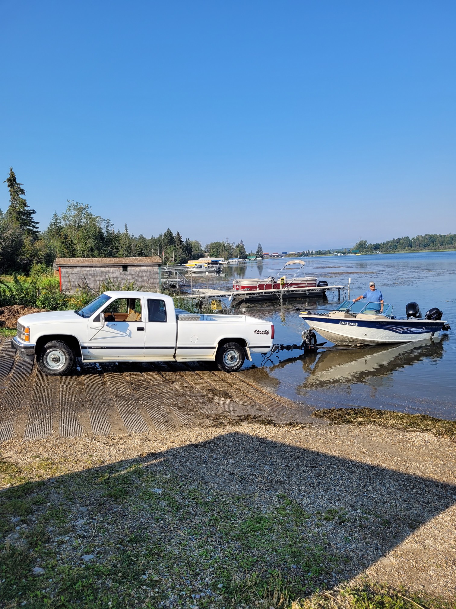 We used Fred’s new truck to haul the boat the lake today. I love this truck. It has a GM Detroit Diesel in it, it does not have one rust spot and the interior is like brand new. This was a true find on Fred’s part. The perfect truck. It just feels powerful when you start it up.