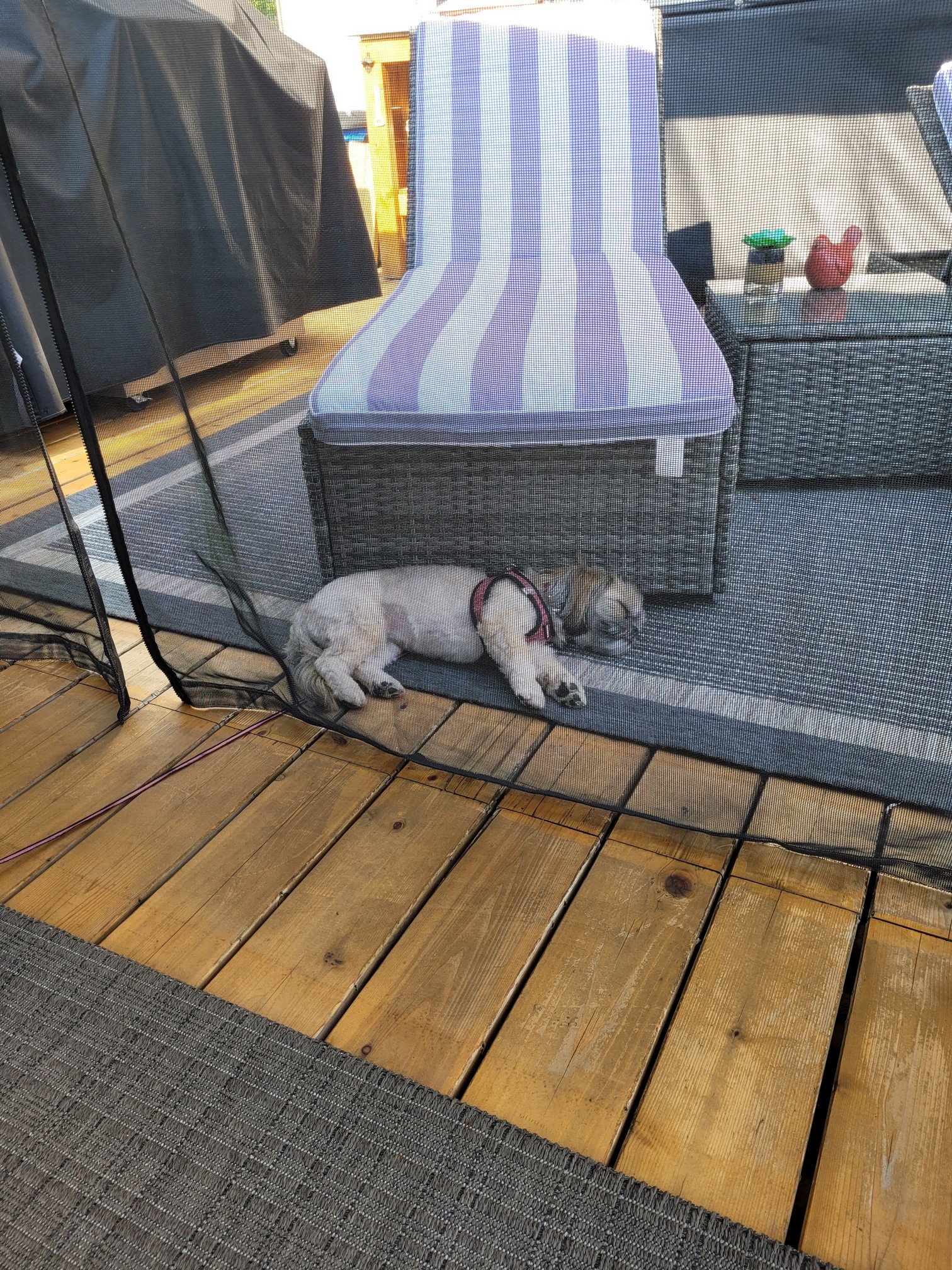 Up early and out to finish the deck at Audrey’s. I love watching my news in bed and three days in a row wrecked. The war could be over and Trudeau could be out for all I know. LOL