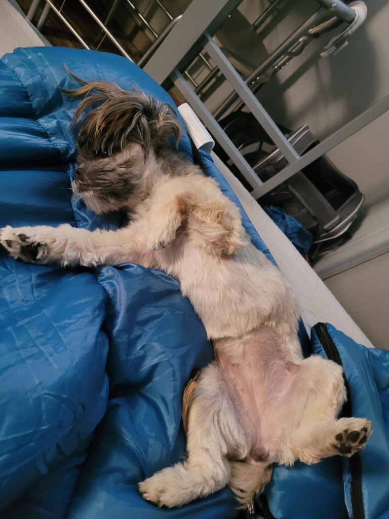 Dogs know when they are ugly due to a bad haircut. Daisy won’t leave her bed.