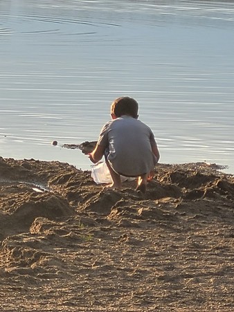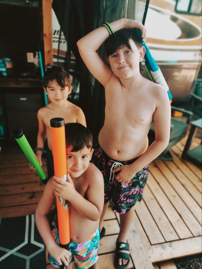 It was a nice drive going down and arrived and ready to set up. We got lucky as there was a cancellation so I picked up a site but without power. No movies, no power to recharge phones etc. Really roughing it. Our plan is to get the kids playing real games. Atti is a little too young yet but August and Jackson love trying to beat us at anything. I discovered August is a UNO guru and loves the game. We had numerous games with WAR and FISH thrown in. Jackson played some video games on his phone but was involved with every game we had. The boys loved BOCCI ball.