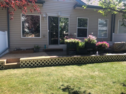 Today we built the down step from the deck to the grass , installed the one board I had to trim and built the stairs coming down from the house. We also trimmed the deck with lattice to cover the end up. Over all I am pretty happy with it. The deck boards today are a different width than the originals which maybe 10 years old or even 20 yrs old so we couldn’t match them up exact. It should last another 25 yrs and now only needs a coat of stain to finish it. Alan took the lead on this with material ordering, waste management, design etc and it is nice that he is a easy guy to work with.