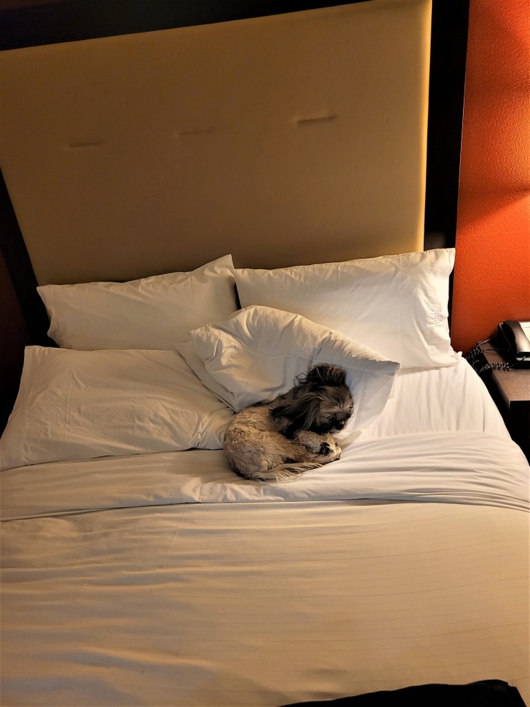 First let me say Daisy from start to finish considering everything was exceptional. She is a pain though for eating and taking care off but she makes up for it by batting her lashes. We were appreciative of Fred & Terry’s flexibility with things. They normally stay at Best Western’s but when I phoned there, they wouldn’t accept a pet. I found a same price hotel Comfort Inn which turned out fantastic. The bed and pillows here were to die for. Comfort to the extreme. We had rooms on the opposite ends of the hotel as the pet section is a separate wing.