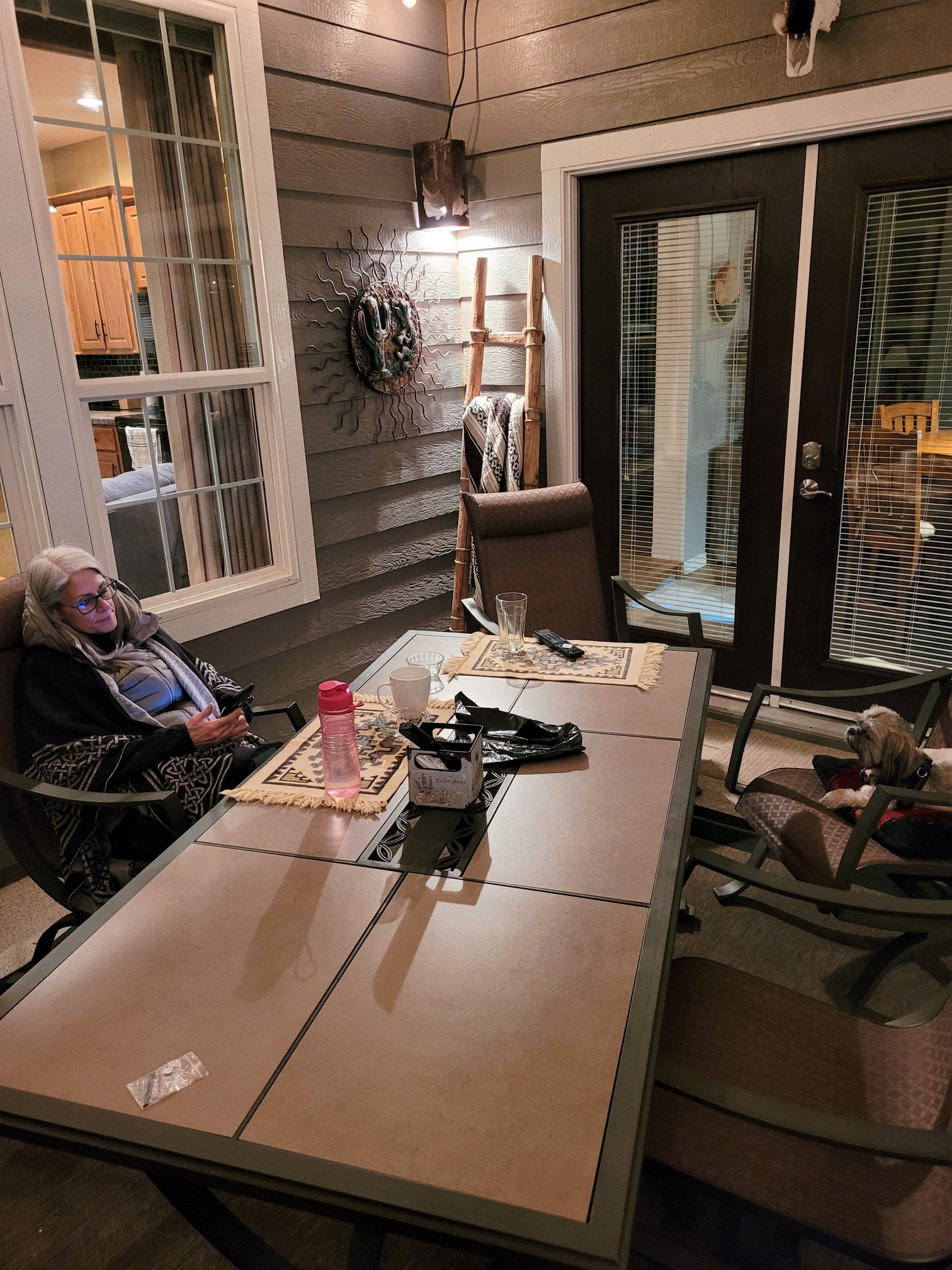 It was a very warm night sitting outside on the deck for supper and games. I love Arizona.