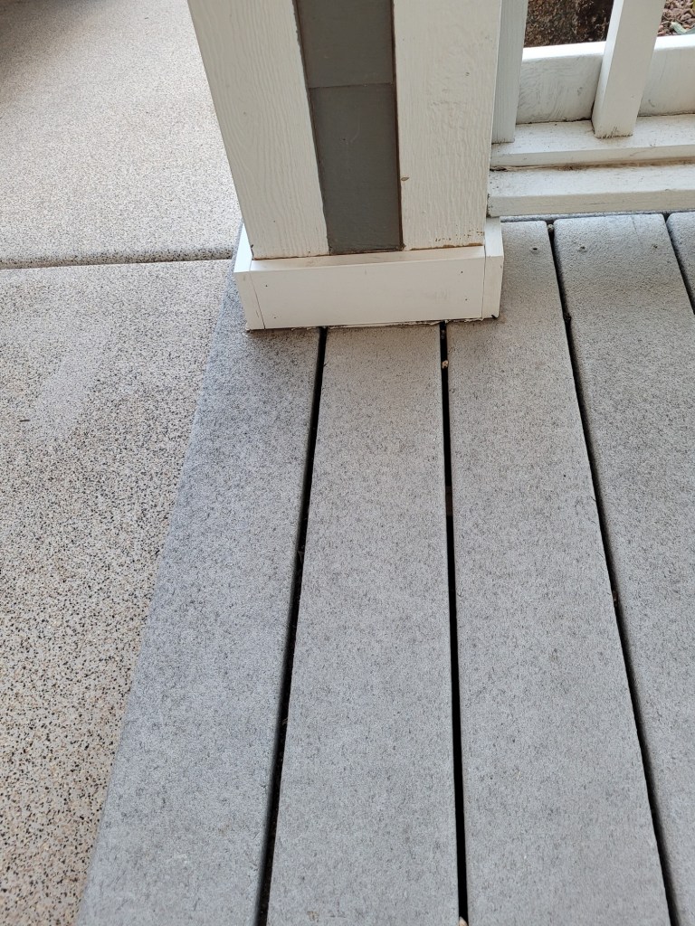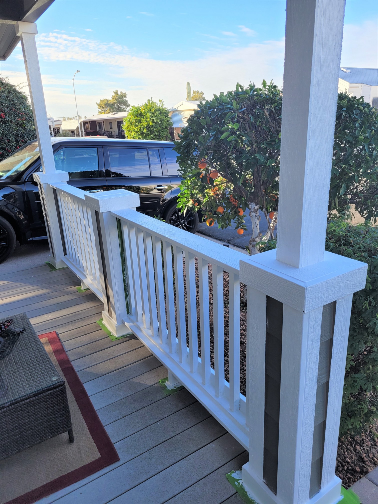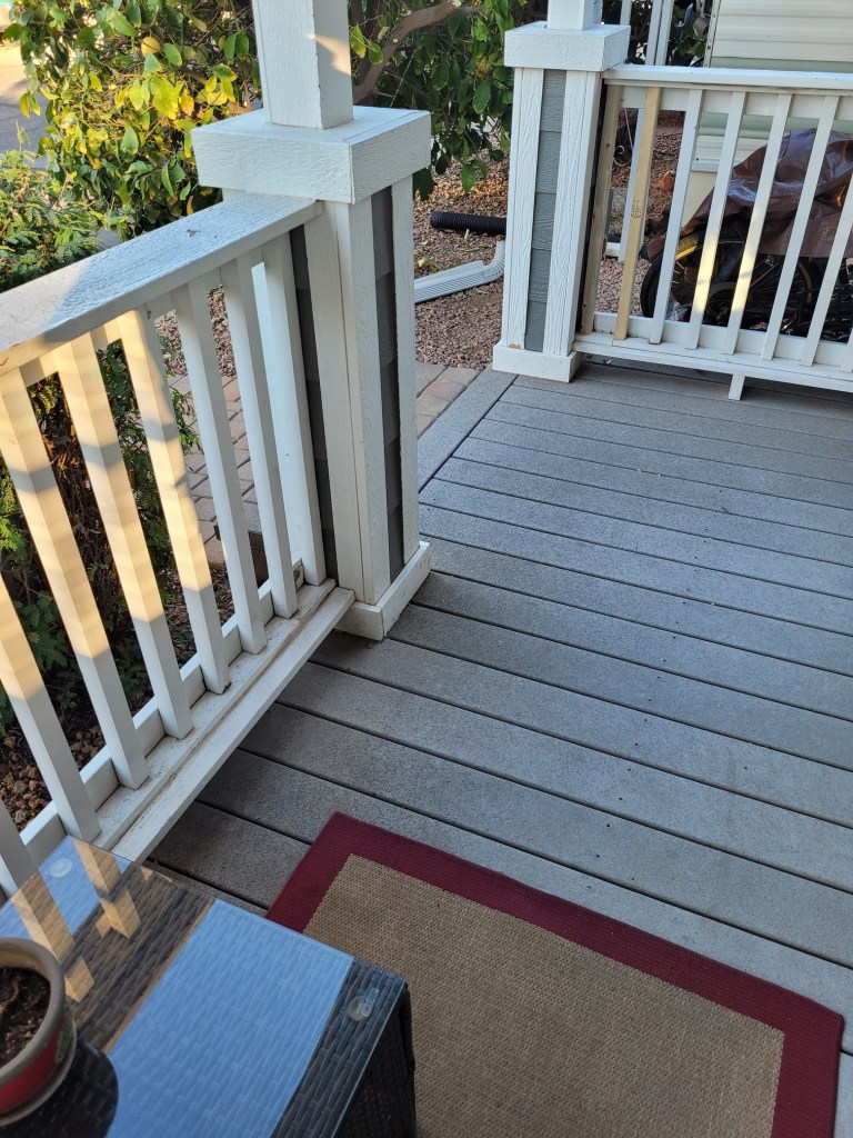 One would think in Arizona which is a desert and doesn’t get alot of rain things would not rot, warp, decay etc. I think it is worse here as the products used are different, rain comes in buckets even though rarely and heat wrecks things. I had wood rot spindles and post bases along with horizontal trim that literally turned to sawdust. To make it 100 percent I should have ripped all of the spindles out, trim boards and started over. That would have been a week project and at least a thousand bucks. I choose to remove all of the posts base trim, remove a bottom base trim and remove a couple of spindles. With a little putty patch and a good coat of sealer/paint it will look like brand new and last for another 10 years. It is 15 yrs old now. The balance of the spindles once painted and the replacements it is good to go. I used solid PVC trim for everything. I loved it. It is solid, cuts like wood, screws and nails like wood and doesn’t split and it is strong. The store only had smooth finish the size I needed which I would prefer the texture, but this looks good.