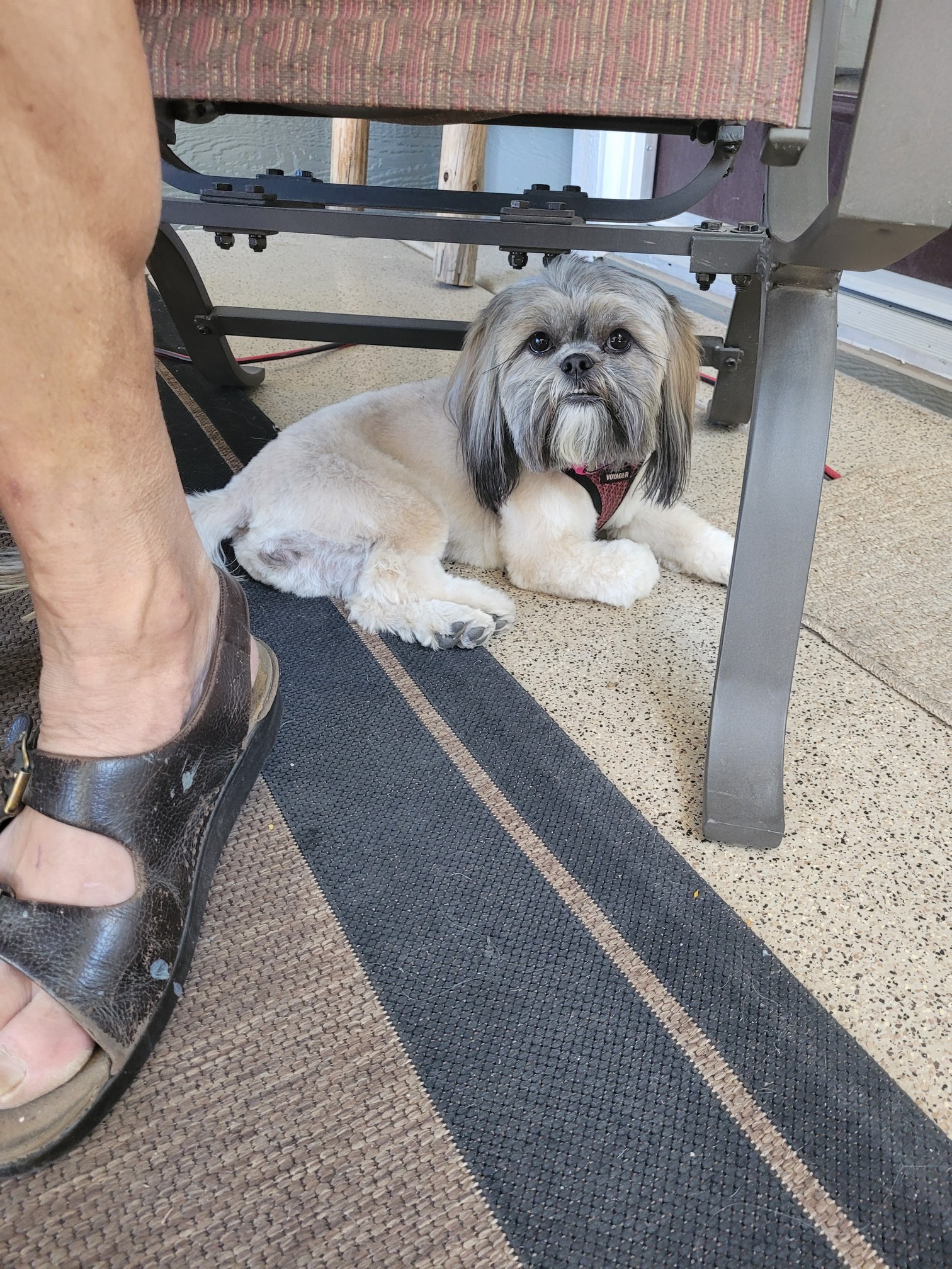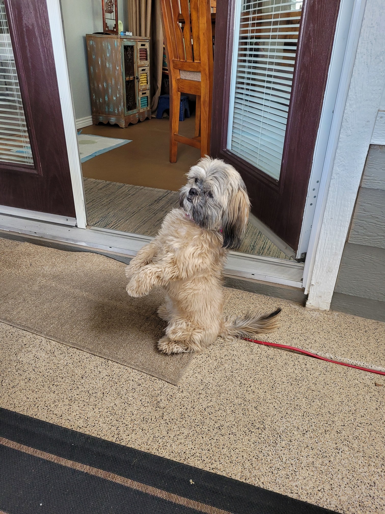 This morning was Daisy’s first hair appointment away from her salon in Calgary. Sergi does a wonderful job as his parlor is in his basement and only takes one dog at a time. The “commercial” cutters usual leave a dog in a kennel with staging of cuts for 4 to 5 hours. Jackie found a place called Liza’s Doghouse. A small shop in a strip mall that only does two dogs at a time. The cutters, the building, the shop and the front desk people were all awesome. Picking up Daisy she was not stressed at all. 2 hours she was done and when I went in the shop there was Daisy playing with the shop dog running all over the place. I think she thought it was a doggie day care place. She looked great.