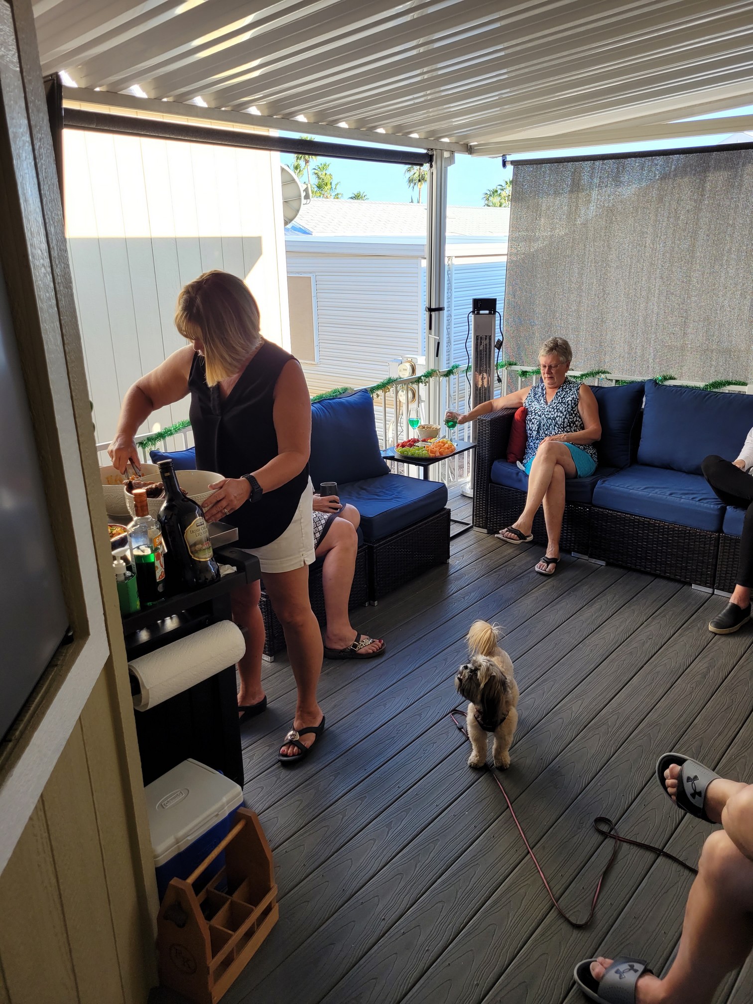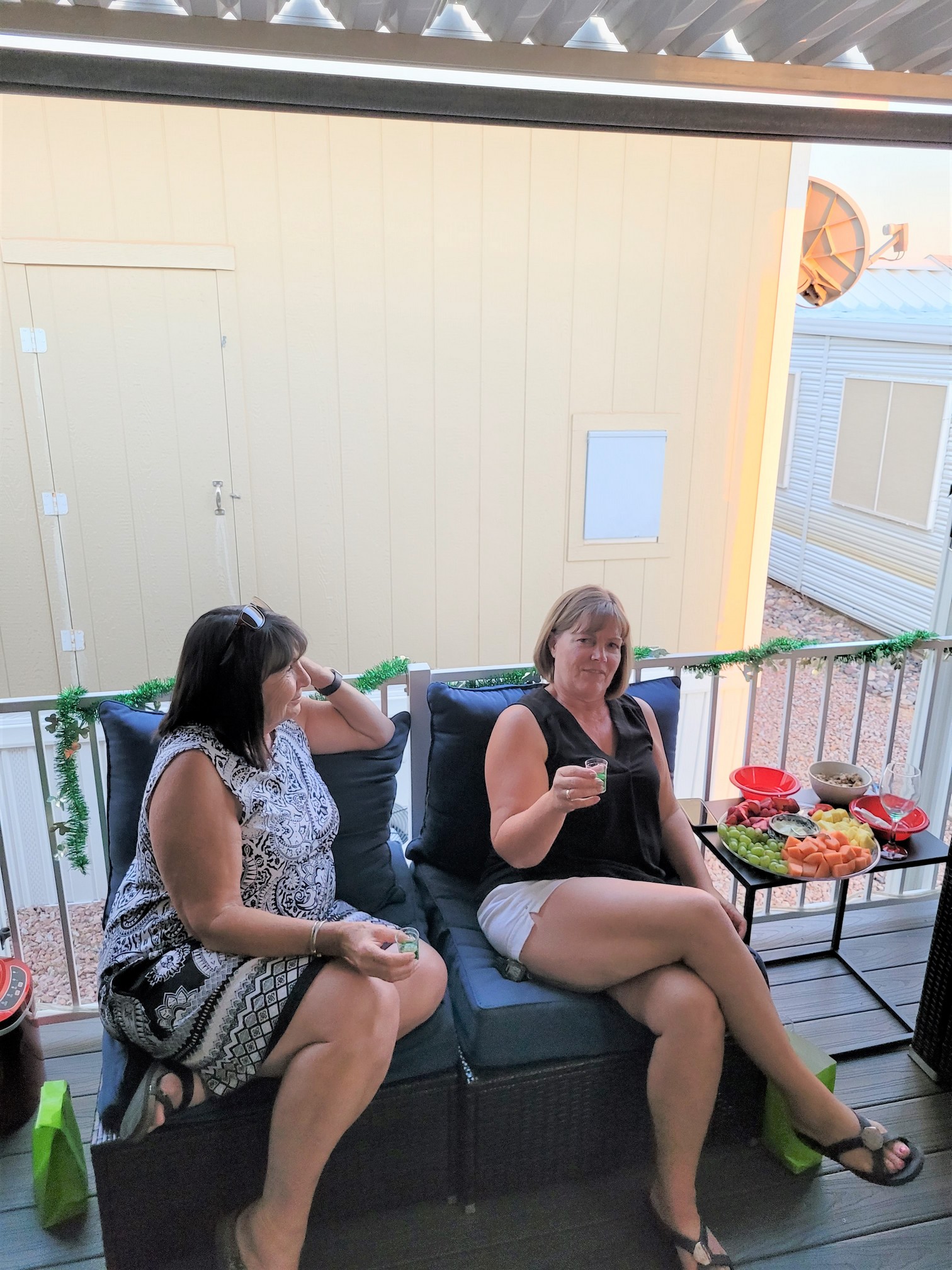 Move patio furniture from back deck to patio