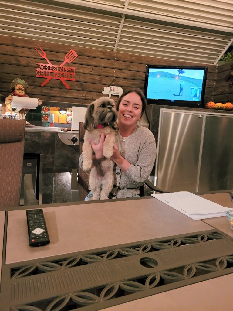 Our second night we stayed at an amazing hotel that we never have before. It was called Comfort Suites and it was amazing. Now it was $40 more but worth every penny as we had a huge room ( suite with couch 50 in tv etc) vinyl plank for dogs and king bed that was incredible and a full hot buffet breakfast. Loved it and will stay again. The first night at a Ramada which as I said was $40 less but not near the room. Jackie & I both agree there are certain things that shouldn’t be scrimped on and a good sleep in a wonderful bed and clean quiet room is more than worth it. Daisy does wreck one thing that I enjoy though and that is eating out at a restaurant so we brought in take out food, but it was still very good.