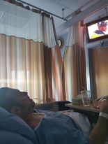Here he is a few hours out of surgery watching the Oilers. I am glad for a win for the Oilers just to make Corey happy. But not on the 26th.
