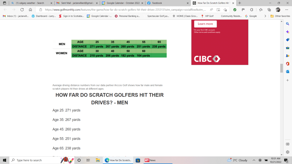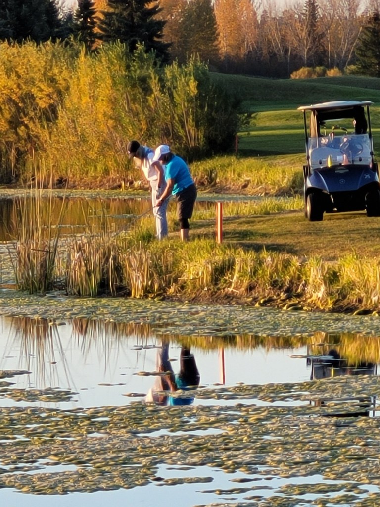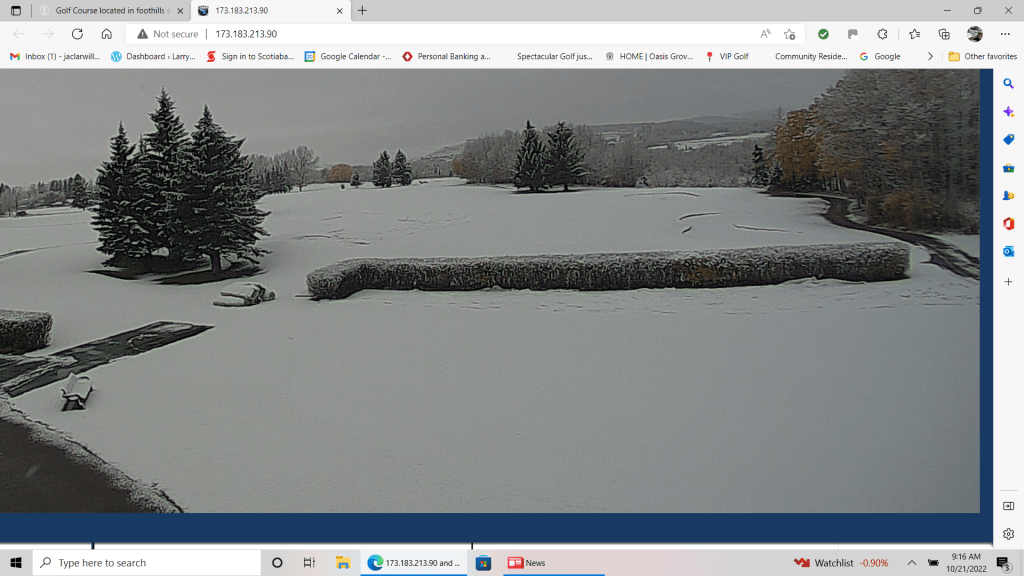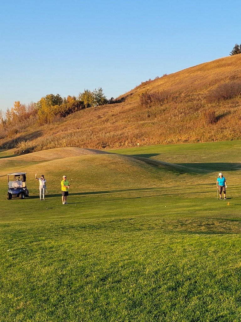 Today I was golfing with three different guys from Turner Valley. I have golfed with them once before. I was relatively happy with my golf. I had 9 pars and 2 birdies but again hit with two holes taking an 8 on them. I pumped up the swing speed as it was my last game at TV for the year and it worked. I did not lose one ball off the tee and had one drive over 300 yards and many very long. I played very well again except screwing up. If I can improve my short game (30 yards and in) I will bring my score a way down. I hate the shot from the fringe grass around the green or even 10 yards off. I need to stop the ball closer to the hole. I will practice this. Right now, I use multiple clubs 7 iron, 8 iron, SW and AW but I think I will revert to using one only and practice, practice, practice. Trying to find a comparable green to practice on is hard.