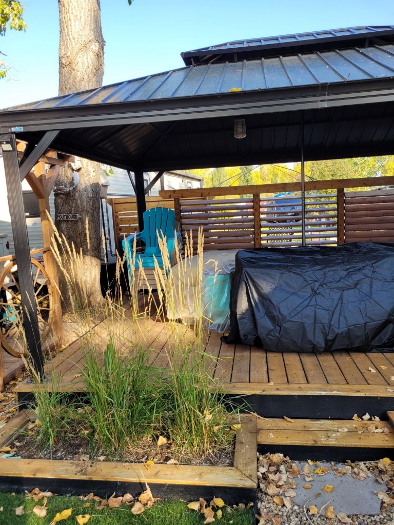 - Removed and cleaned the screens and curtains of the gazebo. Will need to use pressure washer in spring.