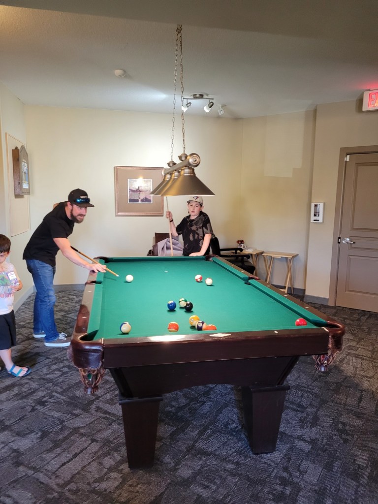 Jackson at 11 years old is getting tough to beat at pool. You have to be very careful as you could lose to him very easily. Corey and I were lucky but extremely close each time.