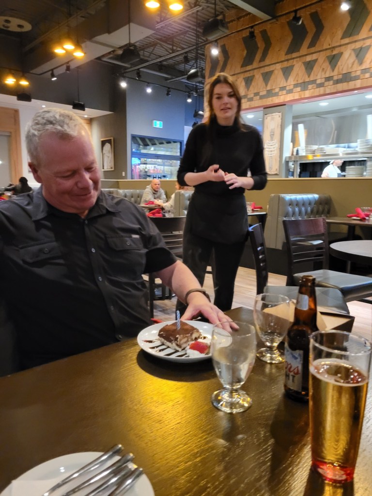 We all enjoyed our meals. They were in my mind wonderful. Our server was exceptional and took great care of us. We even had the staff sing happy birthday to Jeff. It was a very nice enjoyable evening out. It just seems odd that my friends are getting so old. Very few under 60 and a lot approaching 70. Wendy is the youngest of them all.