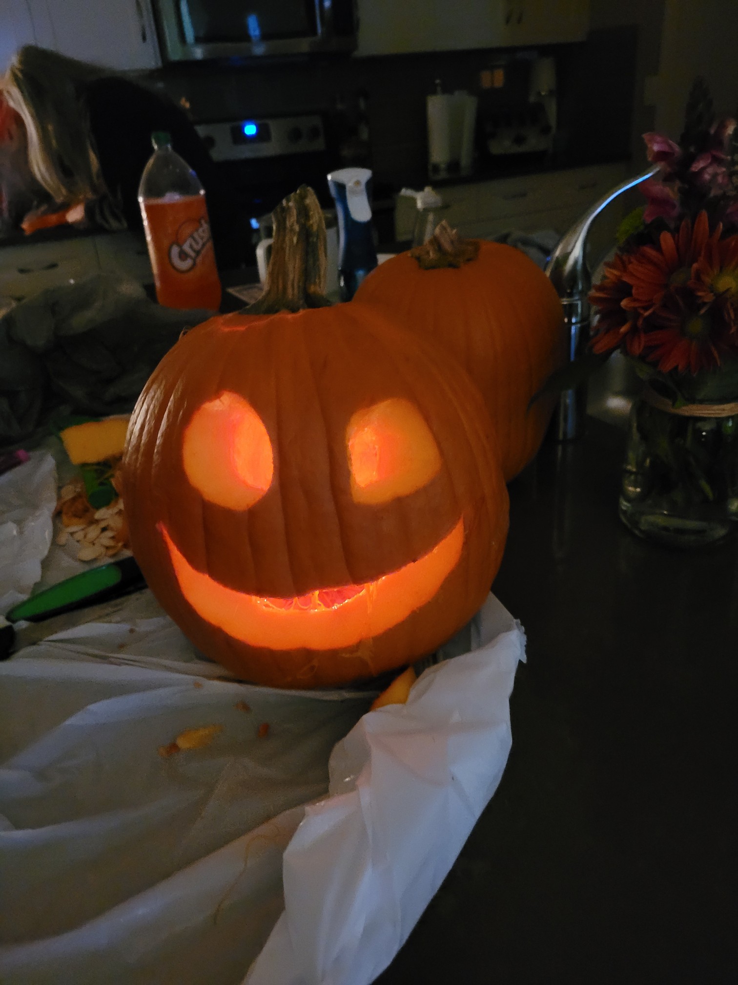 We stopped and picked up Audrey and Little Caeser’s hot to go pizza and headed to Cor and Tor’s place for pumpkin carving.